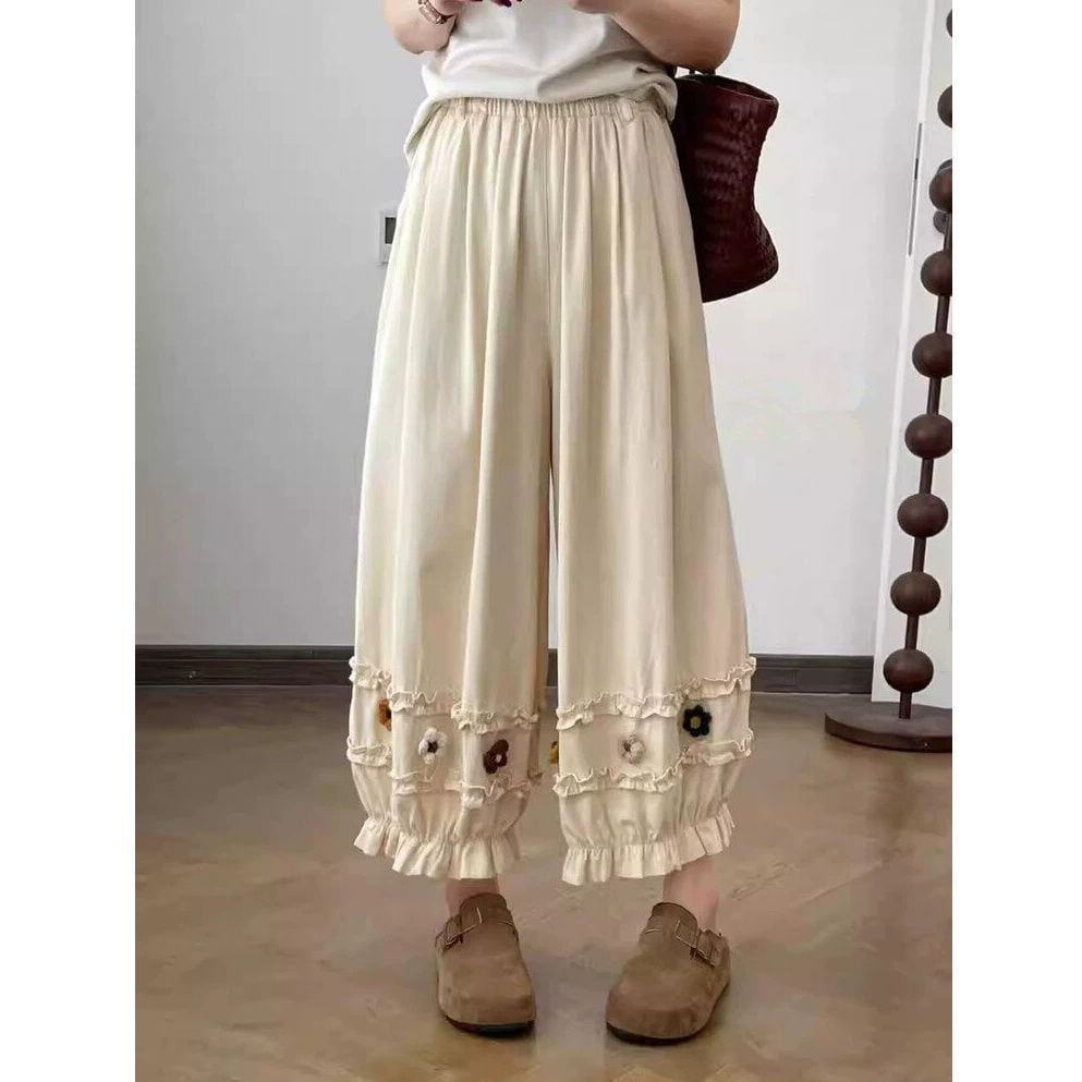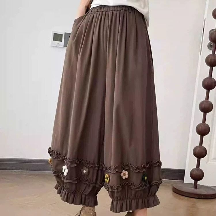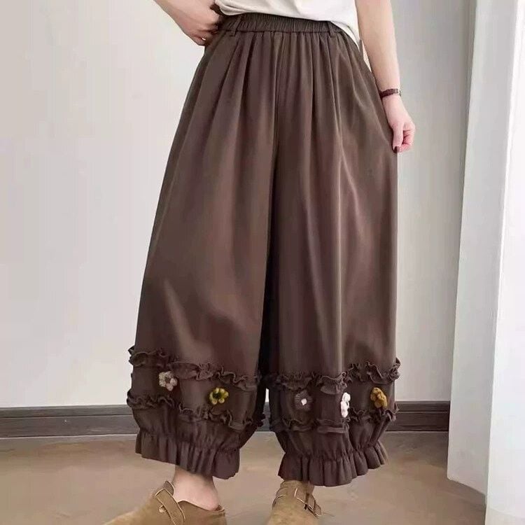 フリルや立体的なお花のモチーフがあしらわれた裾のデザインがガーリーな、ワイドレッグ・カジュアルパンツです。ウエストはゴムなので、着脱が簡単で履き心地が良いです。ランタンのようなシルエットがキュートな、どんなトップスとも合わせやすいアイテムです。色はブラウンとアプリコットの2色から選べます。 SIZE:※測り方によって2-3cmの差が生じる場合がございます。 【M】ウエスト62-86cm ヒップ116cm 着丈83cm 【L】ウエスト64-88cm ヒップ120cm 着丈84cm 【XL】ウエスト66-90cm ヒップ124cm 着丈85cm 【2XL】ウエスト68-92cm ヒップ128cm 着丈86cm ※ウエストはゴム仕様のため伸縮性がございます。 COLOR:Brown、Beige 素材:ポリエステル、その他 モデル着用サイズ:L モデル情報:身長161cm 体重49kg STYLE CALENDAR:春◎ 夏〇 秋〇 冬〇 お届けについて こちらの商品は海外店舗より直接発送となる為、 ご決済から到着までは、多くの場合【10日-2週間前後】でお届けしております。 ※在庫状況や輸送の混雑により、4週間前後かかる場合がございます。 注意事項 ・商品在庫切れにより注文キャンセルとさせていただく恐れもございますので、予めご了承くださいませ。 ・仕入れ工場を変えることがあるため、記載サイズと若干異なる場合がございます。 ・商品の色味は、お手持ちのスマートフォンの画面によって実物と若干異なる場合がございます。 ・イメージ違いやサイズ交換等、お客さまご都合による交換・返品はご遠慮ください。 送料について 全国一律580円(沖縄県は1,500円) ※10,000円以上のご注文で沖縄県を含む全国送料無料。 お支払い方法について ・クレジットカード決済(VISA/Mastercard/JCB/アメリカン・エクスプレス/ Diners Club) ・Amazon Pay ・PayPay ・コンビニ決済/Pay-easy ※前払いのお支払い方法 ・Pay ID あと払い(コンビニ払い、口座振替) ※あと払いのお支払い方法 ・キャリア決済(d払い/au PAY(auかんたん決済)/ソフトバンク・ワイモバイルまとめて支払い) 管理番号:M-16296