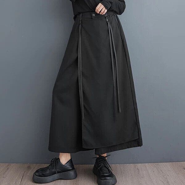 BLACK FLAP DESIGN A-LINE WIDE LEG PANTS 1color M-16317