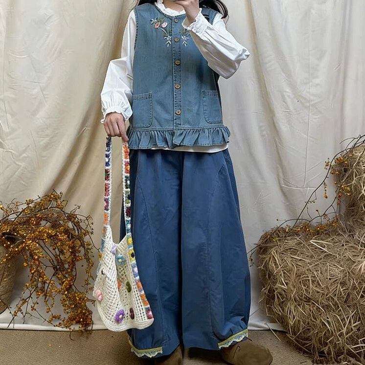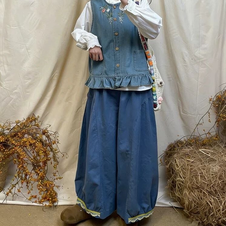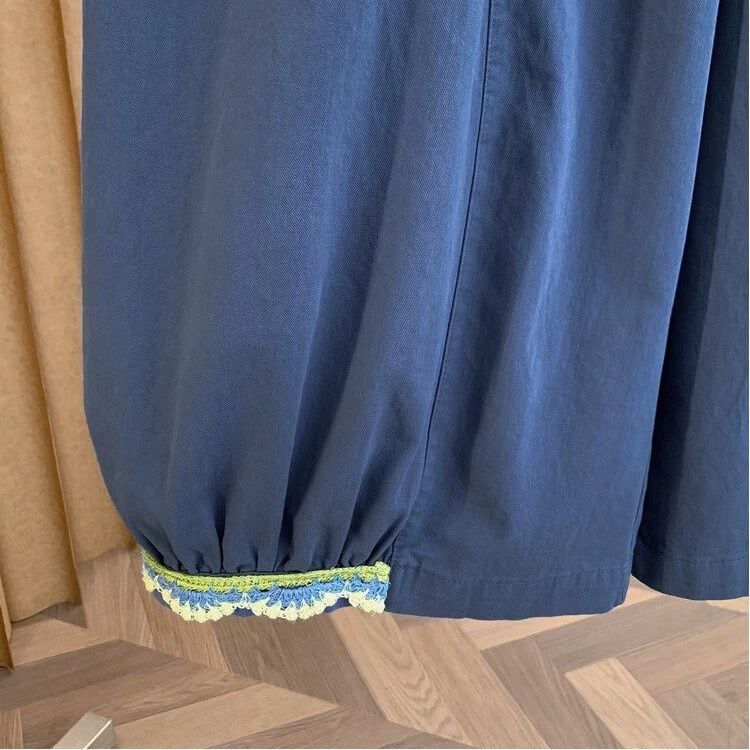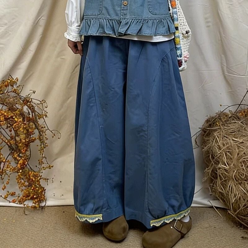 かぎ編みで作られた裾のフリル飾りがキュートな、ブルーのワイドレッグ・デザインパンツです。ウエストはゴムなので、着脱が簡単で履き心地が良いです。大きく膨らんだランタンのようなシルエットが魅力的な、どんなトップスとも合わせやすいカジュアルなアイテムです。 SIZE:※測り方によって2-3cmの差が生じる場合がございます。 【M】ウエスト66-100cm ヒップ114cm 着丈86cm 【L】ウエスト68-104cm ヒップ118cm 着丈87cm 【XL】ウエスト70-108cm ヒップ122cm 着丈88cm 【2XL】ウエスト72-112cm ヒップ126cm 着丈89cm ※ウエストはゴム仕様のため伸縮性がございます。 COLOR:Blue 素材:ポリエステル、その他 モデル着用サイズ:L モデル情報:身長161cm 体重49kg STYLE CALENDAR:春◎ 夏◎ 秋〇 冬△ お届けについて こちらの商品は海外店舗より直接発送となる為、 ご決済から到着までは、多くの場合【10日-2週間前後】でお届けしております。 ※在庫状況や輸送の混雑により、4週間前後かかる場合がございます。 注意事項 ・商品在庫切れにより注文キャンセルとさせていただく恐れもございますので、予めご了承くださいませ。 ・仕入れ工場を変えることがあるため、記載サイズと若干異なる場合がございます。 ・商品の色味は、お手持ちのスマートフォンの画面によって実物と若干異なる場合がございます。 ・イメージ違いやサイズ交換等、お客さまご都合による交換・返品はご遠慮ください。 送料について 全国一律580円(沖縄県は1,500円) ※10,000円以上のご注文で沖縄県を含む全国送料無料。 お支払い方法について ・クレジットカード決済(VISA/Mastercard/JCB/アメリカン・エクスプレス/ Diners Club) ・Amazon Pay ・PayPay ・コンビニ決済/Pay-easy ※前払いのお支払い方法 ・Pay ID あと払い(コンビニ払い、口座振替) ※あと払いのお支払い方法 ・キャリア決済(d払い/au PAY(auかんたん決済)/ソフトバンク・ワイモバイルまとめて支払い) 管理番号:M-16356