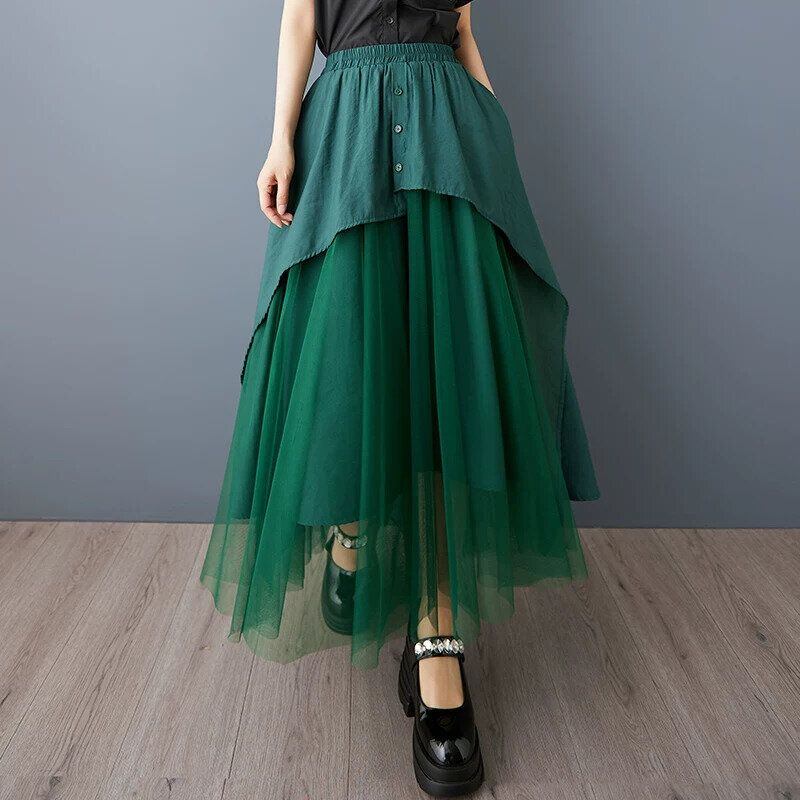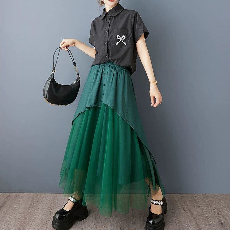 MESH LAYERED A-LINE LONG DESIGN SKIRT 2colors M-16362