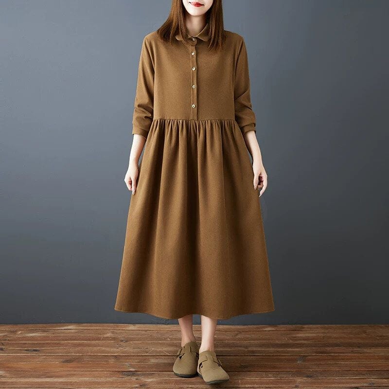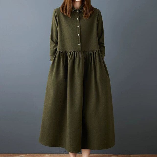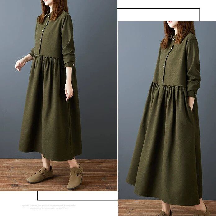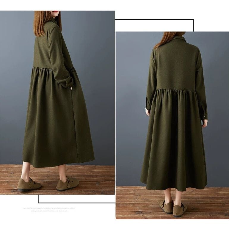 柔らかく肌触りのいいしっかりとした単色素材でできた、タイニーカラー・ハーフボタン・長袖・ひざ下丈のシャツワンピースです。ウエストの切り返しでギャザーの入った、レトロなAラインのシルエットが魅力的なカジュアルアイテムです。色は2色から選べます。 SIZE:※測り方によって2-3cmの差が生じる場合がございます。 【M】バスト100cm 肩幅38cm 袖丈56cm 袖口23cm 裾周り200cm 着丈117cm 【L】バスト104cm 肩幅39cm 袖丈57cm 袖口24cm 裾周り204cm 着丈118cm 【XL】バスト108cm 肩幅40cm 袖丈58cm 袖口25cm 裾周り208cm 着丈119cm 【2XL】バスト112cm 肩幅41cm 袖丈59cm 袖口26cm 裾周り212cm 着丈120cm COLOR:Khaki、Army Green 素材:ポリエステル、その他 モデル着用サイズ:L モデル情報:身長161cm 体重49kg お届けについて こちらの商品は海外店舗より直接発送となる為、 ご決済から到着までは、多くの場合【10日-2週間前後】でお届けしております。 ※在庫状況や輸送の混雑により、4週間前後かかる場合がございます。 注意事項 ・商品在庫切れにより注文キャンセルとさせていただく恐れもございますので、予めご了承くださいませ。 ・仕入れ工場を変えることがあるため、記載サイズと若干異なる場合がございます。 ・商品の色味は、お手持ちのスマートフォンの画面によって実物と若干異なる場合がございます。 ・イメージ違いやサイズ交換等、お客さまご都合による交換・返品はご遠慮ください。 送料について 全国一律580円(沖縄県は1,500円) ※10,000円以上のご注文で沖縄県を含む全国送料無料。 お支払い方法について ・クレジットカード決済(VISA/Mastercard/JCB/アメリカン・エクスプレス/ Diners Club) ・Amazon Pay ・PayPay ・コンビニ決済/Pay-easy ※前払いのお支払い方法 ・Pay ID あと払い(コンビニ払い、口座振替) ※あと払いのお支払い方法 ・キャリア決済(d払い/au PAY(auかんたん決済)/ソフトバンク・ワイモバイルまとめて支払い) 管理番号:M-16364