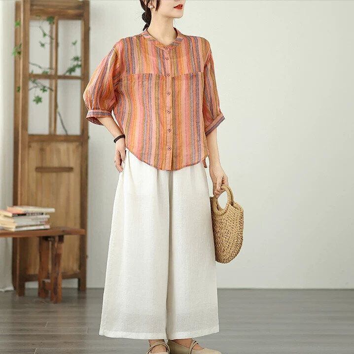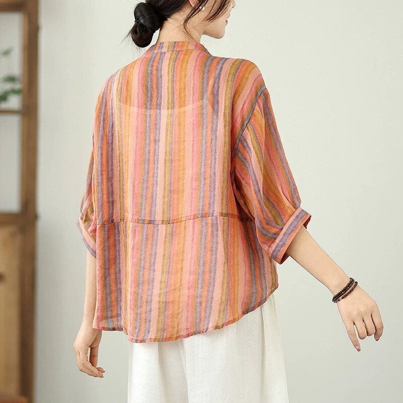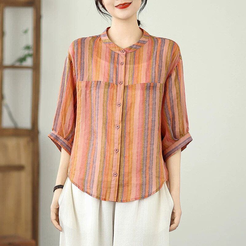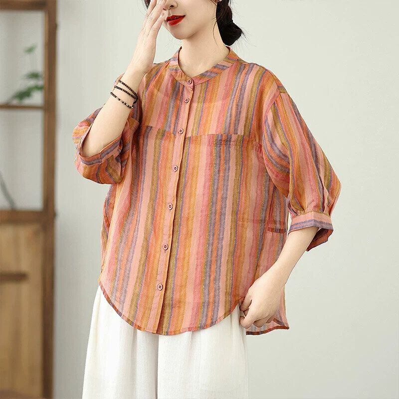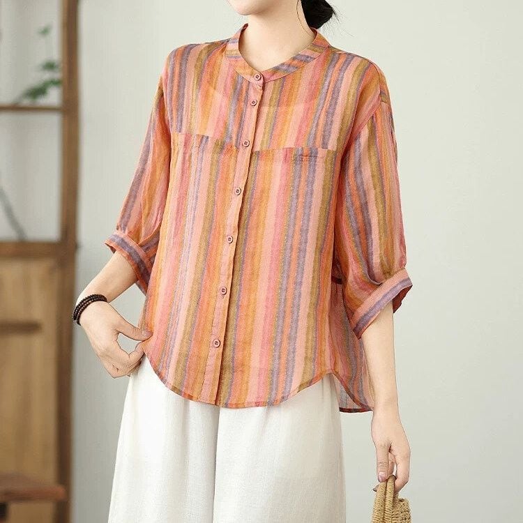 サーモンピンクのデザインストライプがおしゃれでキュートな、スタンドカラー・7分袖・ラウンドカットのデザインシャツです。透け感のある軽くて柔らかな素材でできた、優しい雰囲気のカジュアルアイテムです。 SIZE:※測り方によって2-3cmの差が生じる場合がございます。 【M】バスト114cm 肩幅38cm 袖丈28cm 着丈60cm 【L】バスト118cm 肩幅39cm 袖丈29cm 着丈61cm 【XL】バスト122cm 肩幅40cm 袖丈30cm 着丈62cm 【2XL】バスト126cm 肩幅41cm 袖丈31cm 着丈63cm 【3XL】バスト130cm 肩幅42cm 袖丈32cm 着丈64cm COLOR:Orange 素材:ポリエステル、その他 モデル着用サイズ:L モデル情報:身長161cm 体重49kg お届けについて こちらの商品は海外店舗より直接発送となる為、 ご決済から到着までは、多くの場合【10日-2週間前後】でお届けしております。 ※在庫状況や輸送の混雑により、4週間前後かかる場合がございます。 注意事項 ・商品在庫切れにより注文キャンセルとさせていただく恐れもございますので、予めご了承くださいませ。 ・仕入れ工場を変えることがあるため、記載サイズと若干異なる場合がございます。 ・商品の色味は、お手持ちのスマートフォンの画面によって実物と若干異なる場合がございます。 ・イメージ違いやサイズ交換等、お客さまご都合による交換・返品はご遠慮ください。 送料について 全国一律580円(沖縄県は1,500円) ※10,000円以上のご注文で沖縄県を含む全国送料無料。 お支払い方法について ・クレジットカード決済(VISA/Mastercard/JCB/アメリカン・エクスプレス/ Diners Club) ・Amazon Pay ・PayPay ・コンビニ決済/Pay-easy ※前払いのお支払い方法 ・Pay ID あと払い(コンビニ払い、口座振替) ※あと払いのお支払い方法 ・キャリア決済(d払い/au PAY(auかんたん決済)/ソフトバンク・ワイモバイルまとめて支払い) 管理番号:M-16379