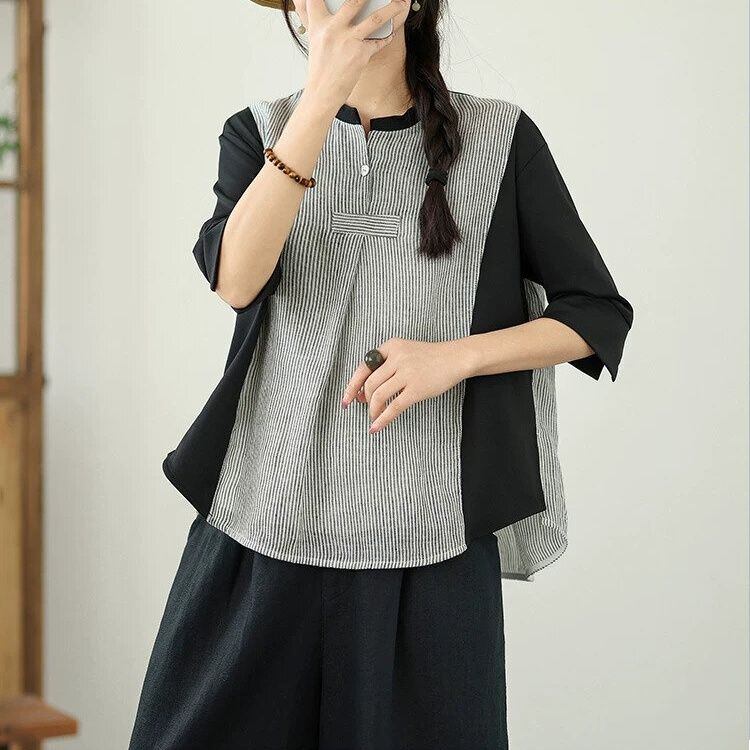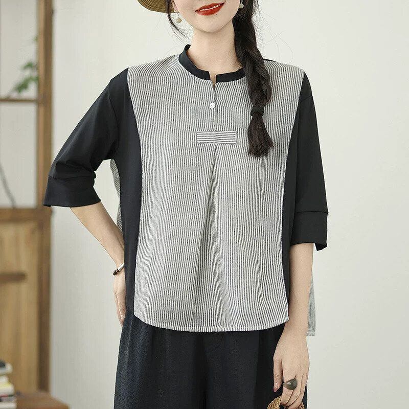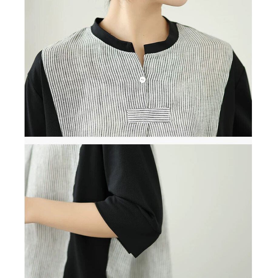 ブラックとストライプのコントラストスティッチがクールな、スタンドカラー付きスリットネック・7分袖・ラウンドカットのプルオーバーシャツです。モノトーンカラーでコーディネートしやすい、ふんわりとしたシルエットが涼しげなアイテムです。 SIZE:※測り方によって2-3cmの差が生じる場合がございます。 【M】バスト116cm 肩幅37cm 袖丈28cm 着丈57cm 【L】バスト120cm 肩幅38cm 袖丈29cm 着丈58cm 【XL】バスト124cm 肩幅39cm 袖丈30cm 着丈59cm 【2XL】バスト128cm 肩幅40cm 袖丈31cm 着丈60cm 【3XL】バスト132cm 肩幅41cm 袖丈32cm 着丈61cm COLOR:Stripe 素材:ポリエステル、その他 モデル着用サイズ:L モデル情報:身長161cm 体重49kg お届けについて こちらの商品は海外店舗より直接発送となる為、 ご決済から到着までは、多くの場合【10日-2週間前後】でお届けしております。 ※在庫状況や輸送の混雑により、4週間前後かかる場合がございます。 注意事項 ・商品在庫切れにより注文キャンセルとさせていただく恐れもございますので、予めご了承くださいませ。 ・仕入れ工場を変えることがあるため、記載サイズと若干異なる場合がございます。 ・商品の色味は、お手持ちのスマートフォンの画面によって実物と若干異なる場合がございます。 ・イメージ違いやサイズ交換等、お客さまご都合による交換・返品はご遠慮ください。 送料について 全国一律580円(沖縄県は1,500円) ※10,000円以上のご注文で沖縄県を含む全国送料無料。 お支払い方法について ・クレジットカード決済(VISA/Mastercard/JCB/アメリカン・エクスプレス/ Diners Club) ・Amazon Pay ・PayPay ・コンビニ決済/Pay-easy ※前払いのお支払い方法 ・Pay ID あと払い(コンビニ払い、口座振替) ※あと払いのお支払い方法 ・キャリア決済(d払い/au PAY(auかんたん決済)/ソフトバンク・ワイモバイルまとめて支払い) 管理番号:M-16380