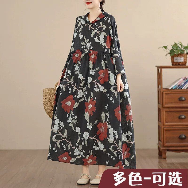 FLOWER PRINT HOODED LONG WIDE PULLOVER DRESS 1color M-16391