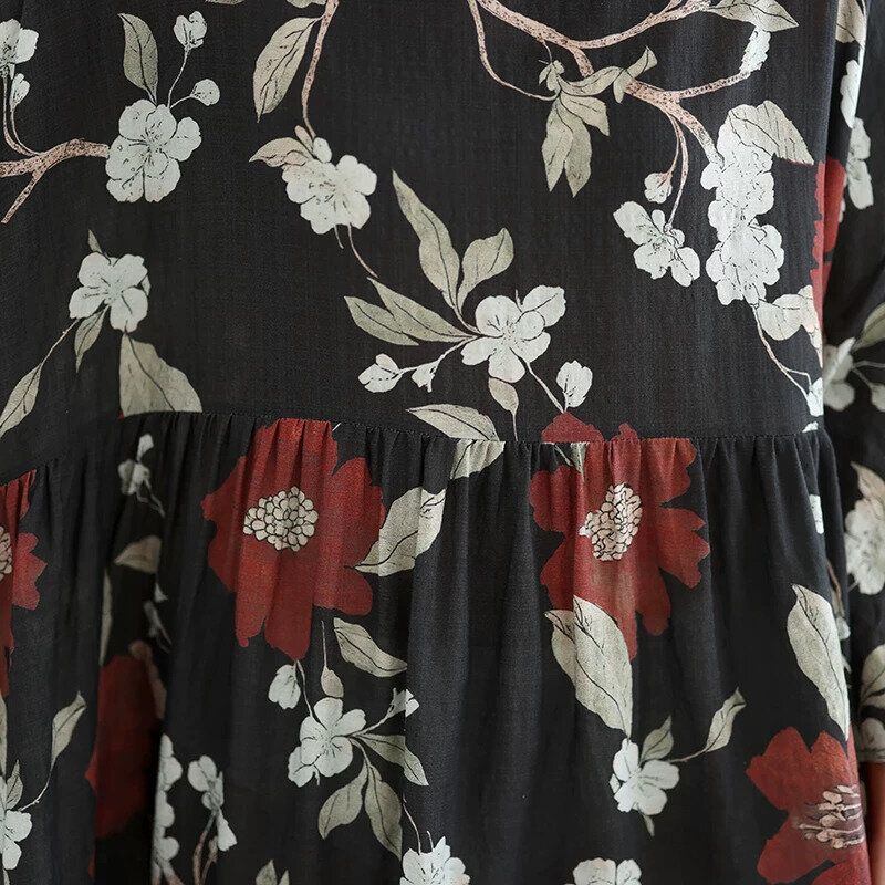 ブラック地に赤いボタンの花柄が美しくクールな、フード付き・長袖・ロング丈のプルオーバーワンピースです。胸下の切り返しでギャザーの入ったゆったりとしたシルエットが、エレガントでリラックスした印象のアイテムです。