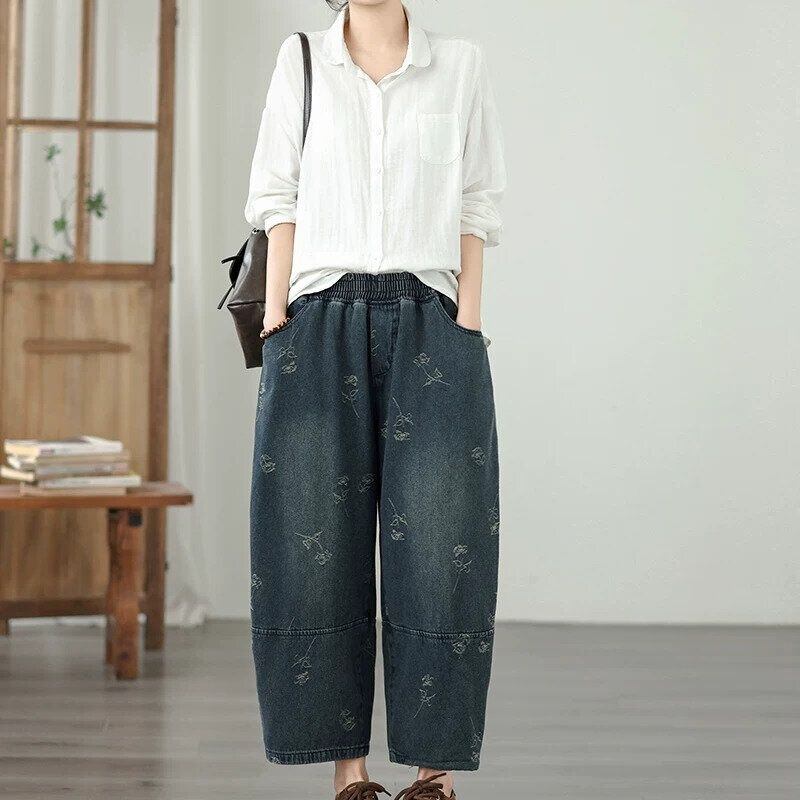 さりげない花の刺繍柄がおしゃれな、ワイドレッグ・クロップド・デニムパンツです。ウエストはゴムなので、着脱が簡単で履き心地が良いです。どんなトップスとも合わせやすい、丸みのあるシルエットがキュートなアイテムです。 SIZE:※測り方によって2-3cmの差が生じる場合がございます。 【M】ウエスト60-88cm ヒップ120cm 太もも周り72cm 裾幅48cm 着丈82cm 【L】ウエスト64-92cm ヒップ124cm 太もも周り74cm 裾幅50cm 着丈74cm 【XL】ウエスト68-96cm ヒップ128cm 太もも周り76cm 裾幅52cm 着丈76cm 【2XL】ウエスト72-100cm ヒップ132cm 太もも周り78cm 裾幅54cm 着丈78cm 【3XL】ウエスト76-104cm ヒップ136cm 太もも周り80cm 裾幅56cm 着丈80cm ※ウエストはゴム仕様のため伸縮性がございます。 COLOR:Blue 素材:ポリエステル、その他 モデル着用サイズ:L モデル情報:身長161cm 体重49kg STYLE CALENDAR:春◎ 夏◎ 秋〇 冬△ お届けについて こちらの商品は海外店舗より直接発送となる為、 ご決済から到着までは、多くの場合【10日-2週間前後】でお届けしております。 ※在庫状況や輸送の混雑により、4週間前後かかる場合がございます。 注意事項 ・商品在庫切れにより注文キャンセルとさせていただく恐れもございますので、予めご了承くださいませ。 ・仕入れ工場を変えることがあるため、記載サイズと若干異なる場合がございます。 ・商品の色味は、お手持ちのスマートフォンの画面によって実物と若干異なる場合がございます。 ・イメージ違いやサイズ交換等、お客さまご都合による交換・返品はご遠慮ください。 送料について 全国一律580円(沖縄県は1,500円) ※10,000円以上のご注文で沖縄県を含む全国送料無料。 お支払い方法について ・クレジットカード決済(VISA/Mastercard/JCB/アメリカン・エクスプレス/ Diners Club) ・Amazon Pay ・PayPay ・コンビニ決済/Pay-easy ※前払いのお支払い方法 ・Pay ID あと払い(コンビニ払い、口座振替) ※あと払いのお支払い方法 ・キャリア決済(d払い/au PAY(auかんたん決済)/ソフトバンク・ワイモバイルまとめて支払い) 管理番号:M-16393