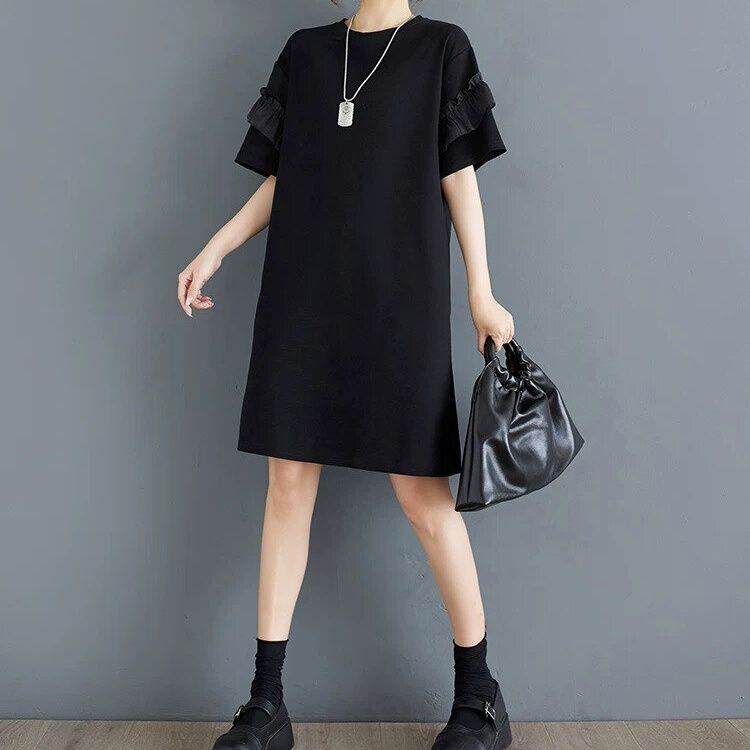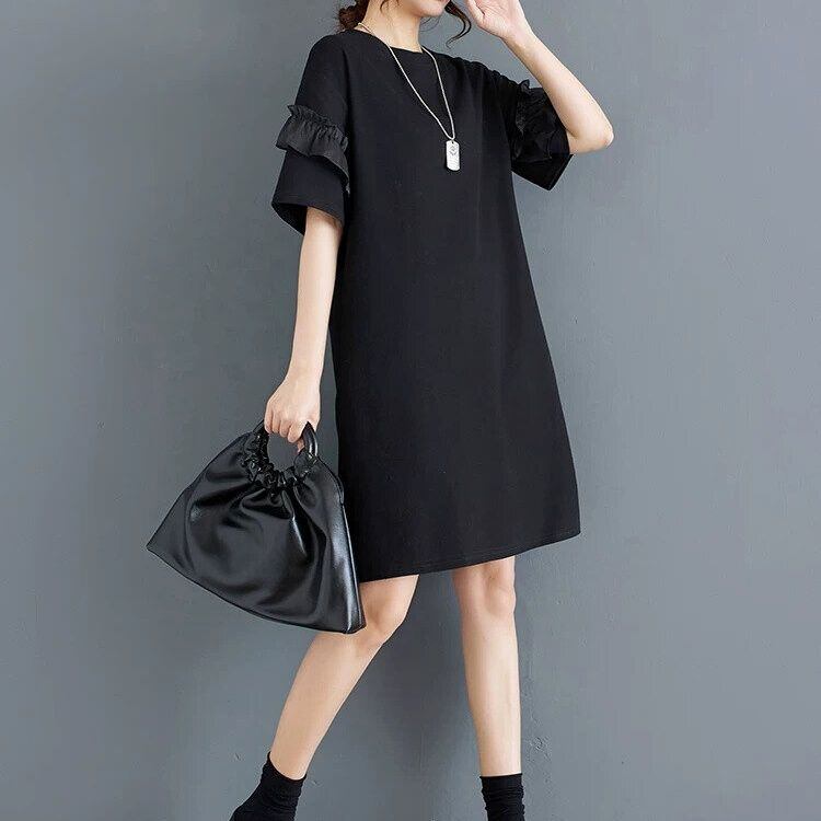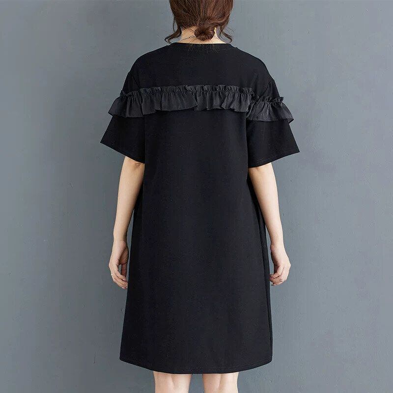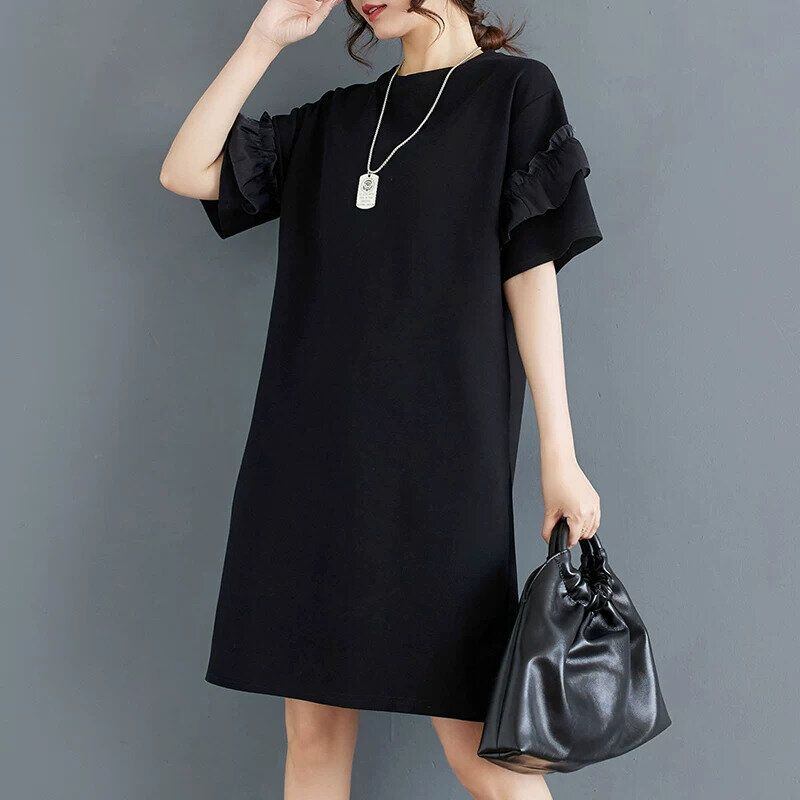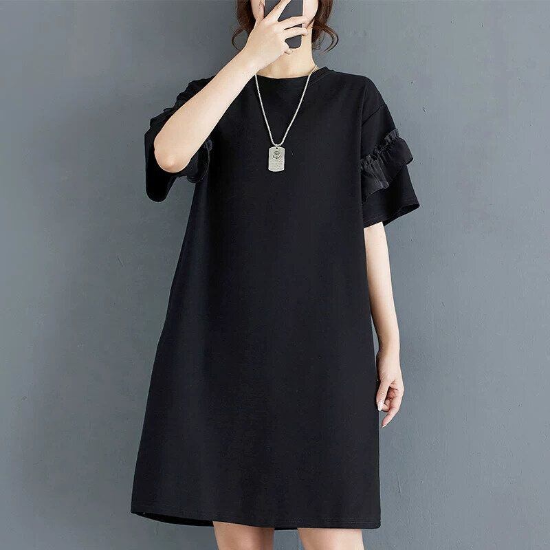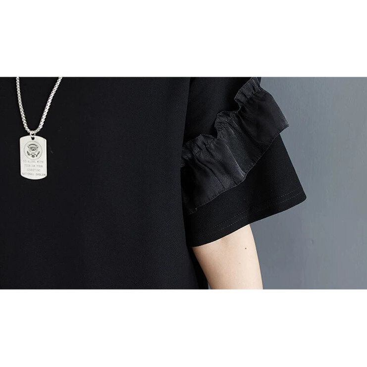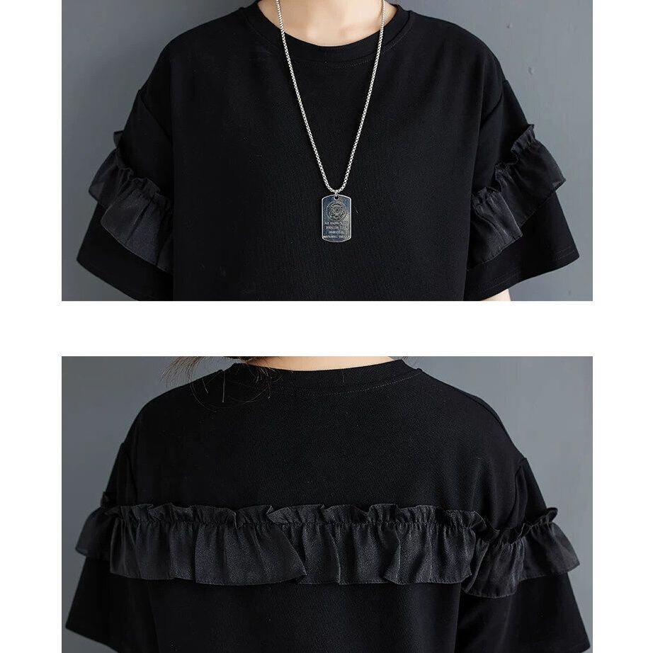 BLACK FRILL LINED MINI T-SHIRT DRESS 1color M-16396