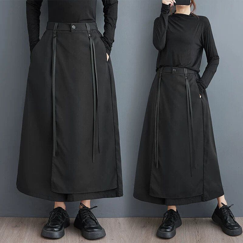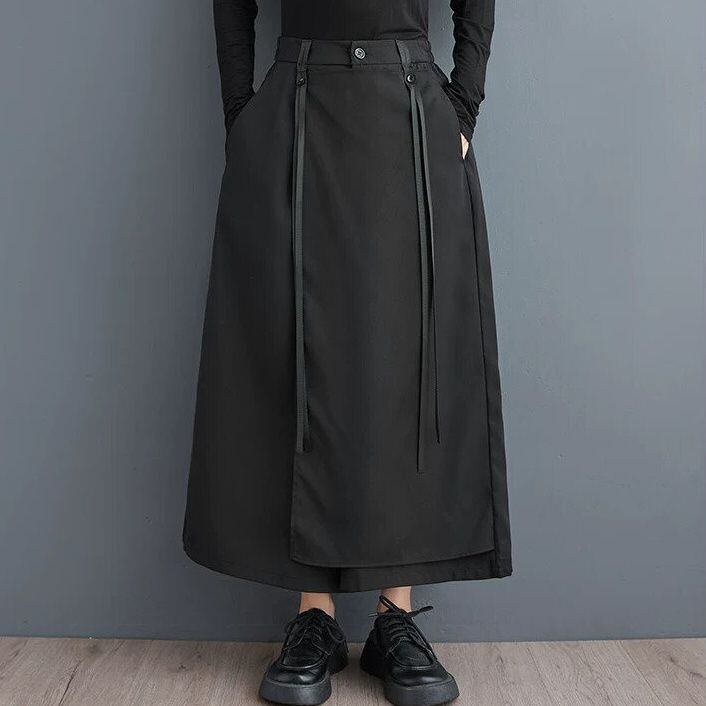 BLACK FLAP DESIGN A-LINE WIDE LEG PANTS 1color M-16399