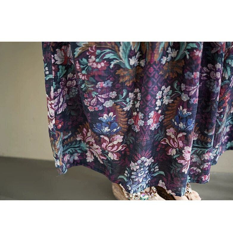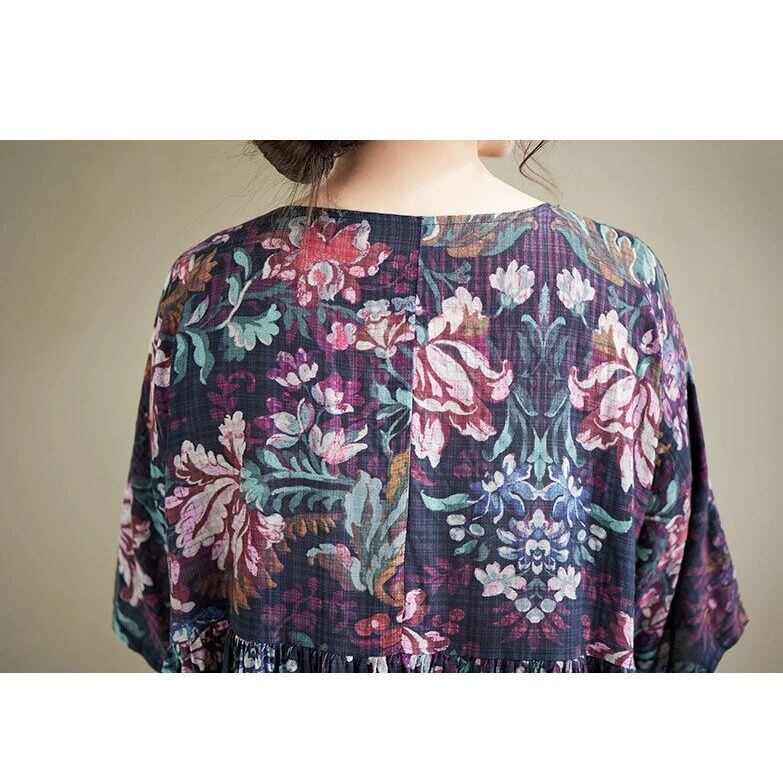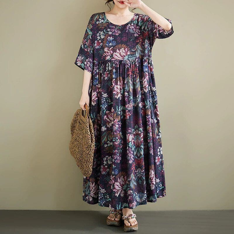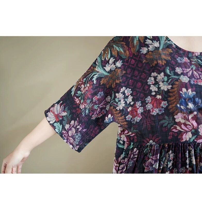 FLOWER PRINT BOAT NECK 3/4 SLEEVES MAXI PULLOVER DRESS 1color M-16413