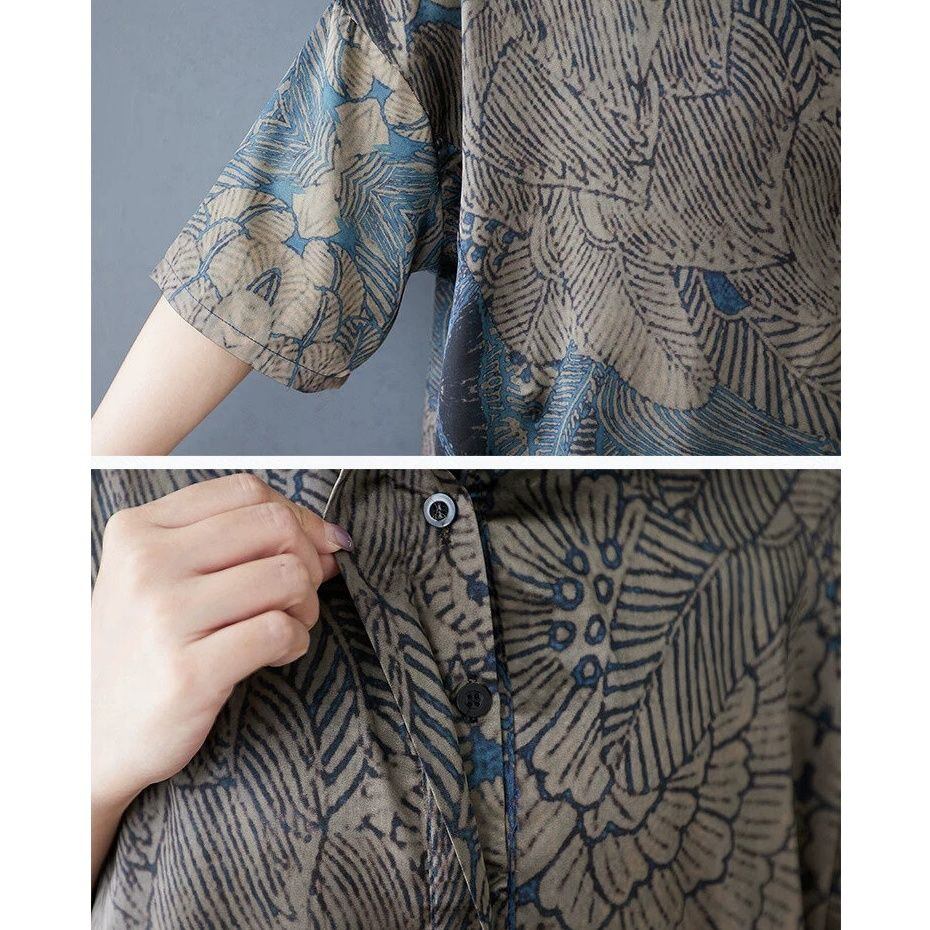 PRINT HALF SLEEVES MIDI A-LINE SHIRT DRESS 1color M-16431
