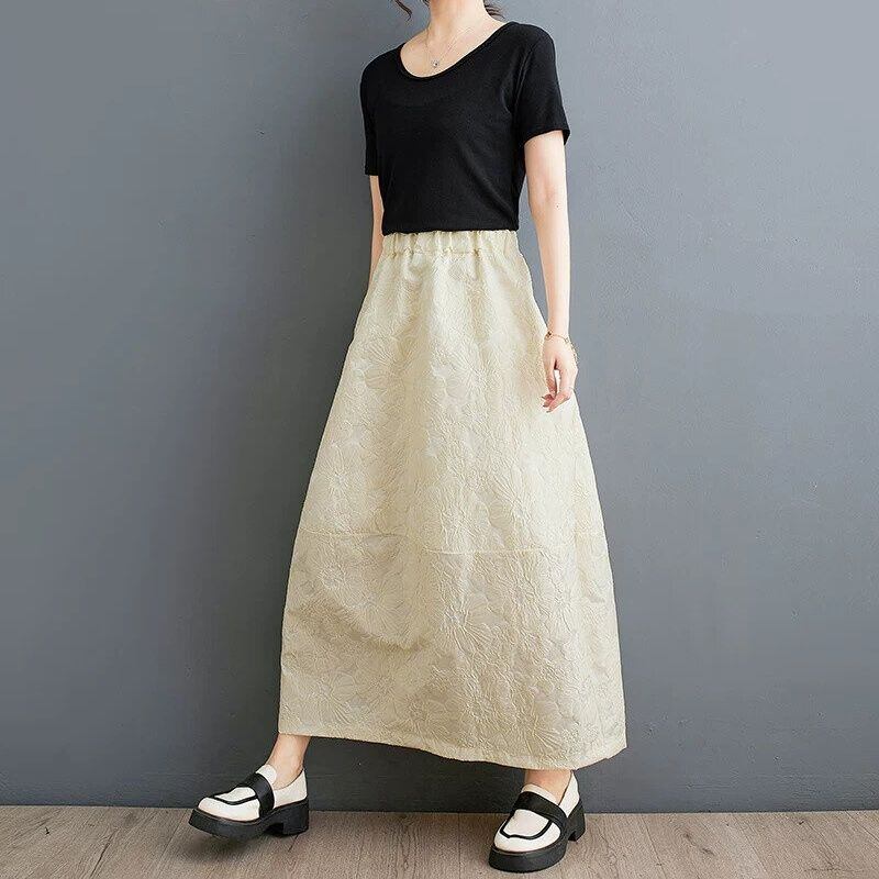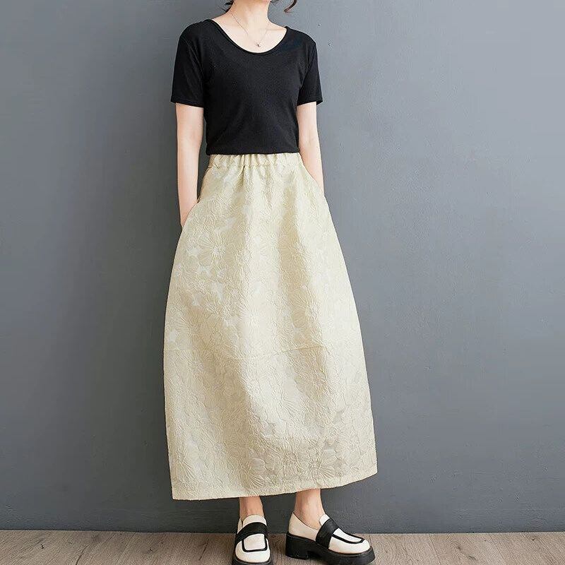 凹凸でできた花柄が上品で美しい、ひざ下丈のデザインスカートです。ウエストはゴムなので、着脱が簡単で履き心地が良いです。ふんわりとしたランタンのようなAラインシルエットがキュートな、単色で合わせやすいアイテムです。 SIZE:※測り方によって2-3cmの差が生じる場合がございます。 【M】ウエスト62-80cm 裾周り138cm 着丈84cm 【L】ウエスト64-84cm 裾周り142cm 着丈85cm 【XL】ウエスト66-88cm 裾周り146cm 着丈86cm ※ウエストはゴム仕様のため伸縮性がございます。 COLOR:Apricot、Black 素材:ポリエステル、その他 モデル着用サイズ:L モデル情報:身長161cm 体重49kg STYLE CALENDAR:春〇 夏◎ 秋〇 冬△ お届けについて こちらの商品は海外店舗より直接発送となる為、 ご決済から到着までは、多くの場合【10日-2週間前後】でお届けしております。 ※在庫状況や輸送の混雑により、4週間前後かかる場合がございます。 注意事項 ・商品在庫切れにより注文キャンセルとさせていただく恐れもございますので、予めご了承くださいませ。 ・仕入れ工場を変えることがあるため、記載サイズと若干異なる場合がございます。 ・商品の色味は、お手持ちのスマートフォンの画面によって実物と若干異なる場合がございます。 ・イメージ違いやサイズ交換等、お客さまご都合による交換・返品はご遠慮ください。 送料について 全国一律580円(沖縄県は1,500円) ※10,000円以上のご注文で沖縄県を含む全国送料無料。 お支払い方法について ・クレジットカード決済(VISA/Mastercard/JCB/アメリカン・エクスプレス/ Diners Club) ・Amazon Pay ・PayPay ・コンビニ決済/Pay-easy ※前払いのお支払い方法 ・Pay ID あと払い(コンビニ払い、口座振替) ※あと払いのお支払い方法 ・キャリア決済(d払い/au PAY(auかんたん決済)/ソフトバンク・ワイモバイルまとめて支払い) 管理番号:M-16466