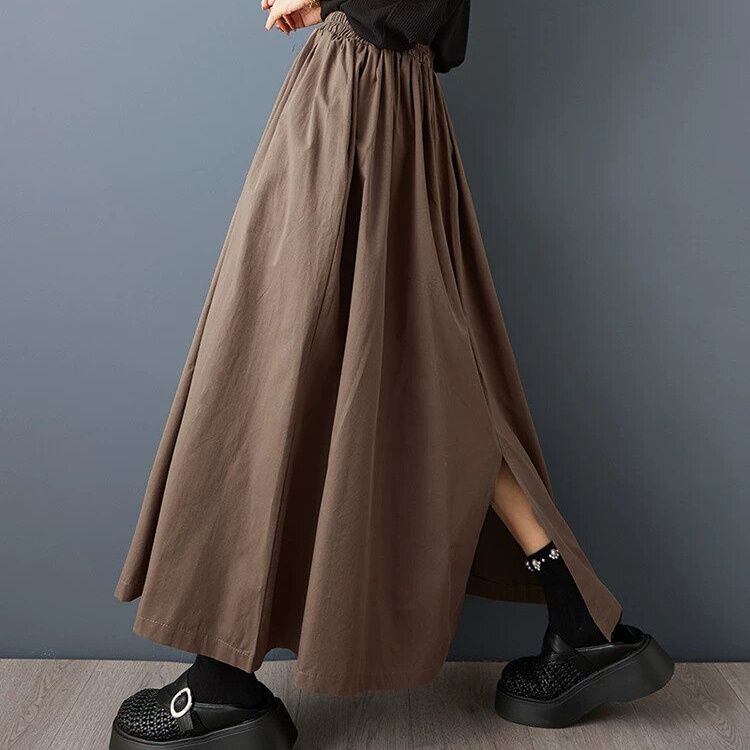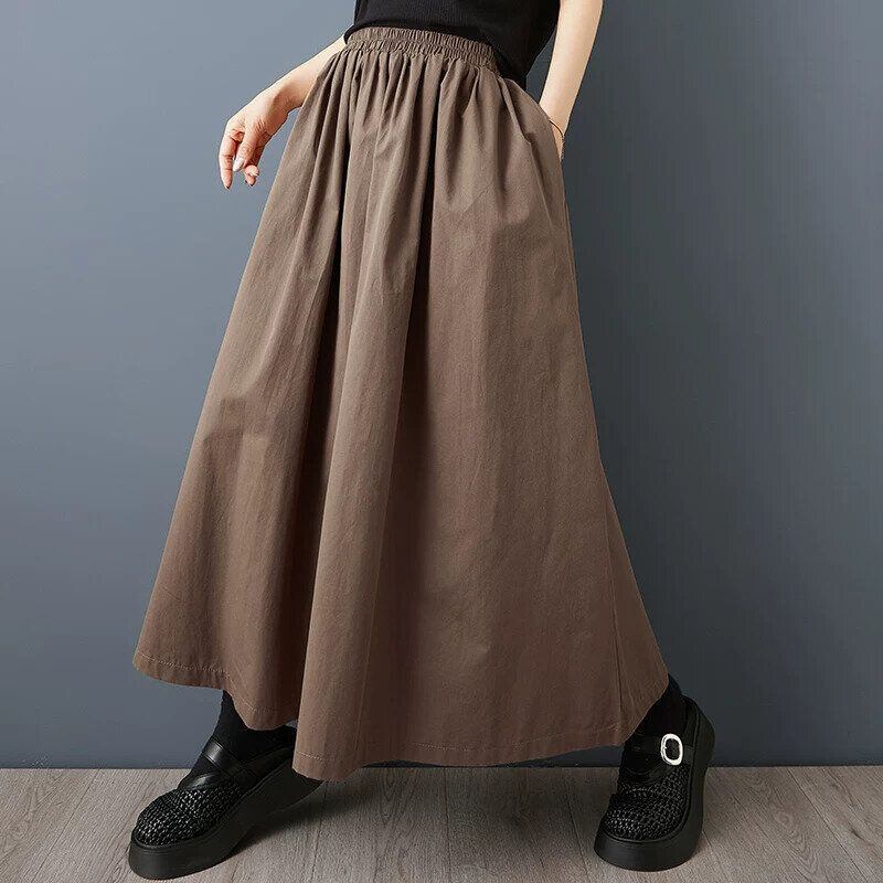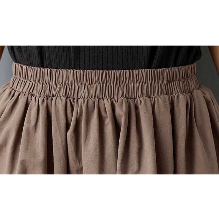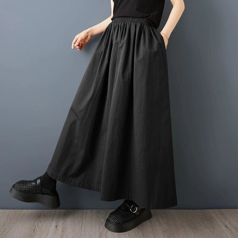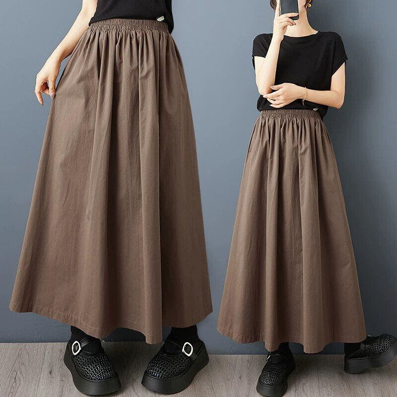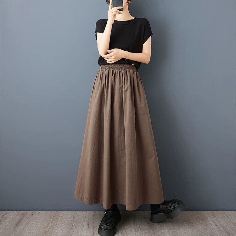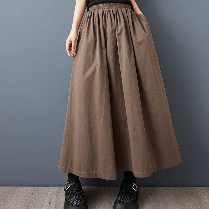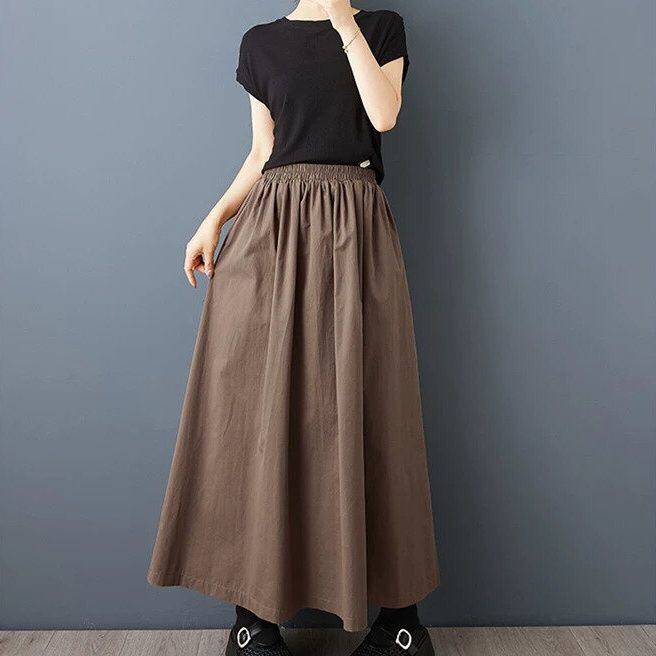 SOLID ELASTIC WAIST A-LINE LONG SKIRT 2colors M-16468