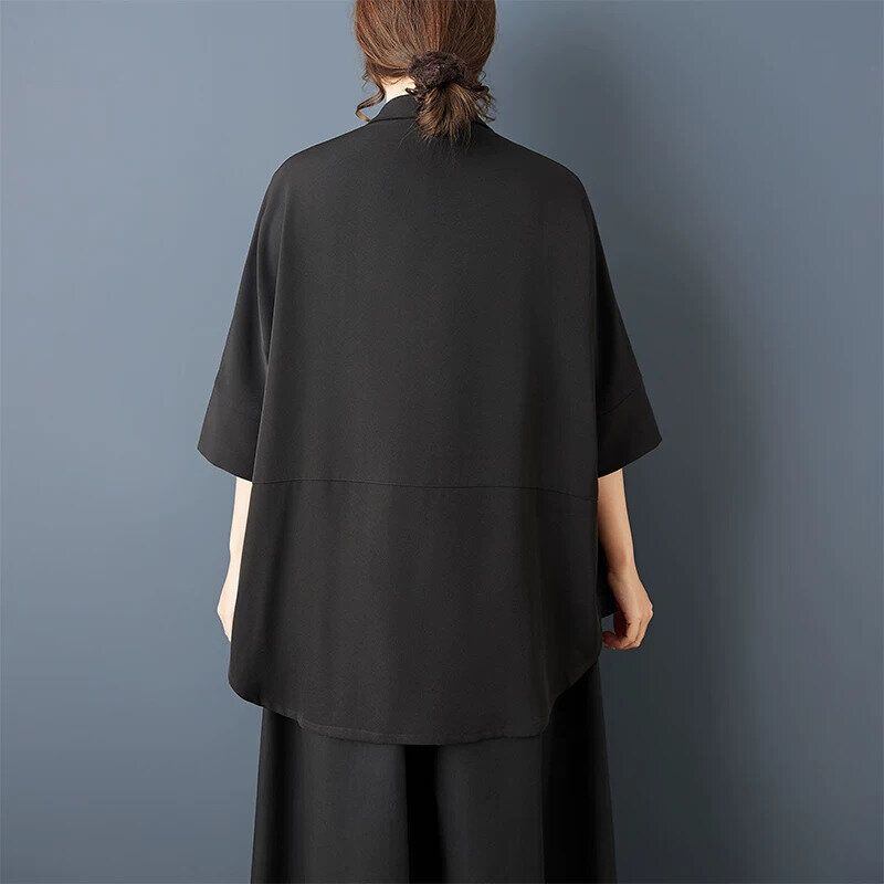BLACK STAND COLLAR 3/4 SLEEVES SHIRT JACKET 1color M-16469
