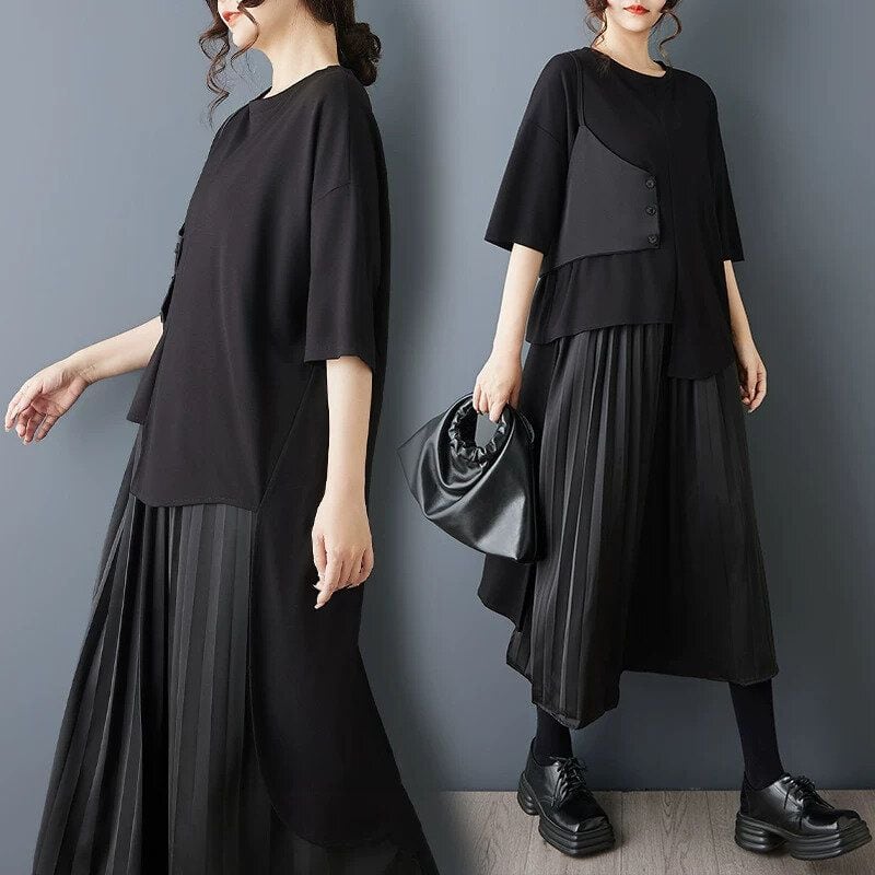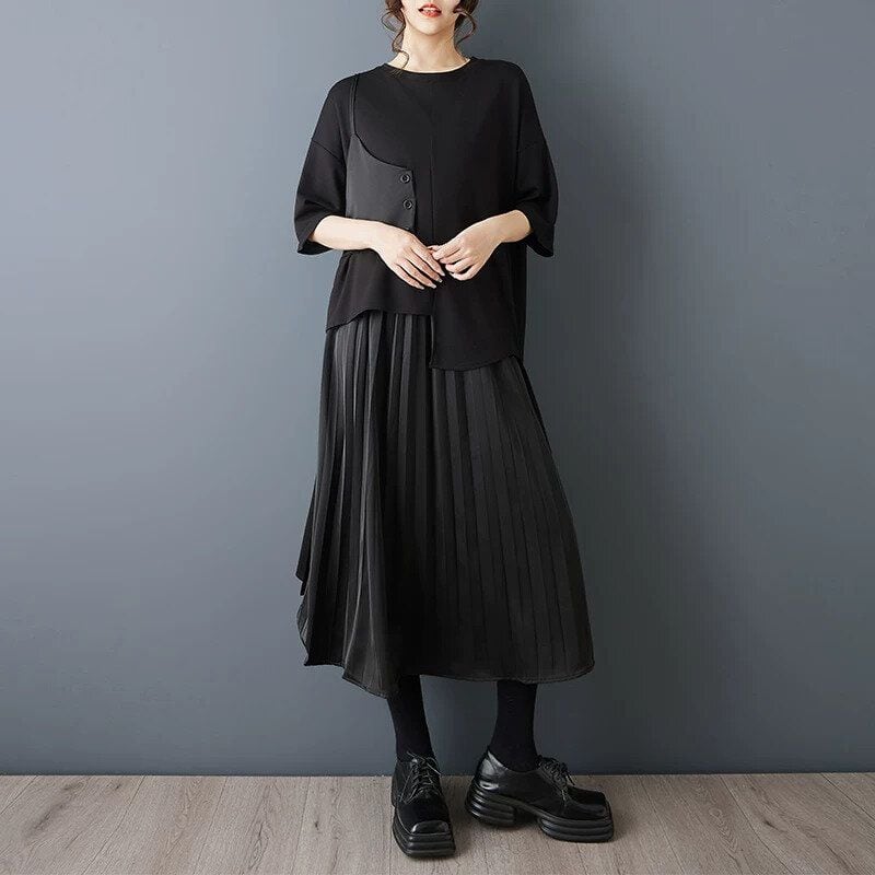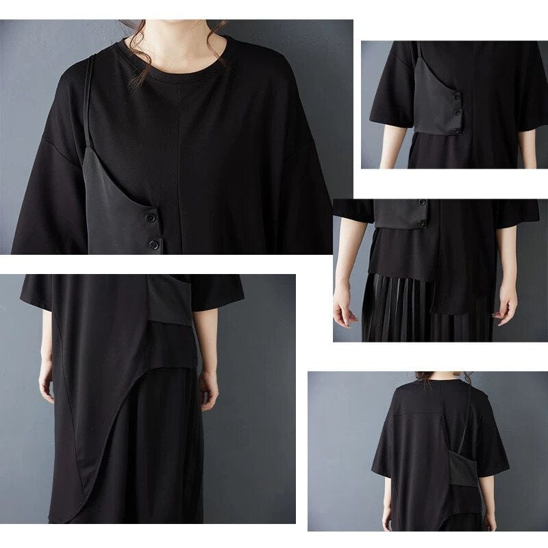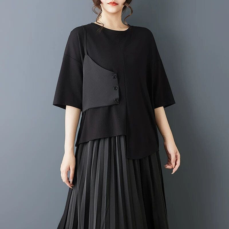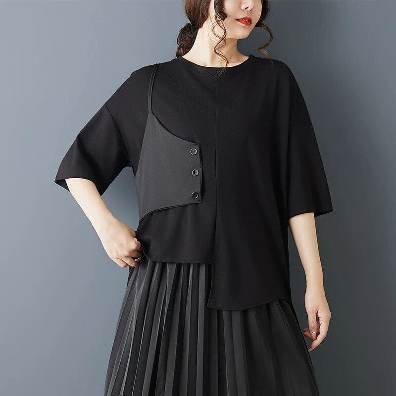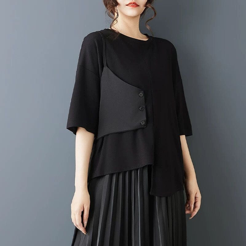 BLACK ASYMMERTIC DESIGN HALF SLEEVES T-SHIRT 1color M-16472