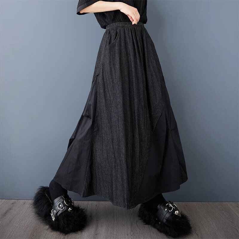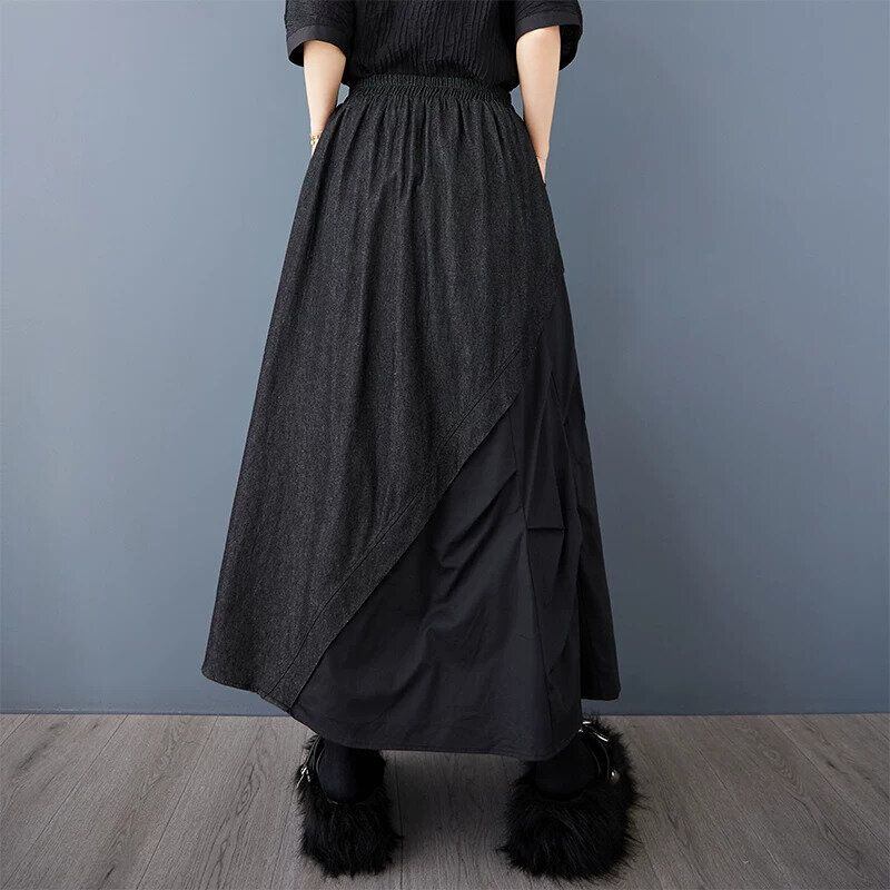 BLACK STITCH DESIGN A-LINE LONG DENIM SKIRT 1color M-16477