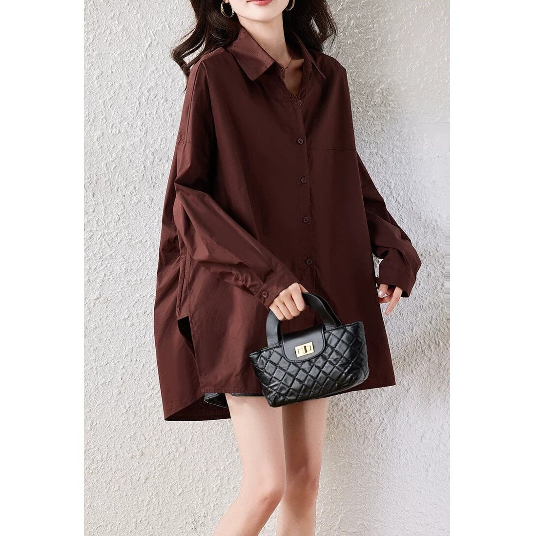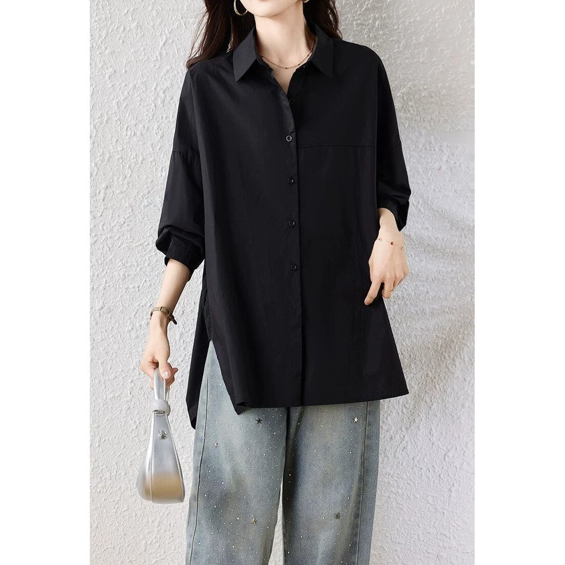 単色の滑らかな素材でできた、ポロ襟・長袖・ハイローヘムのカジュアルシャツです。フロントはボックスカット・バックはラウンドカットになっていて、サイドにスリットが入っています。シンプルなデザインでコーディネートしやすい、着回し力の高いアイテムです。色はブラックとブラウンの2色から選べます。 SIZE:※測り方によって2-3cmの差が生じる場合がございます。 【L】バスト154cm 袖丈73cm 袖周り46cm ウエスト154cm 着丈(前/後)78/86cm 【XL】バスト158cm 袖丈74cm 袖周り47cm ウエスト158cm 着丈(前/後)79/87cm 【2XL】バスト162cm 袖丈75cm 袖周り48cm ウエスト162cm 着丈(前/後)80/88cm 【3XL】バスト166cm 袖丈76cm 袖周り49cm ウエスト166cm 着丈(前/後)81/89cm 【4XL】バスト170cm 袖丈77cm 袖周り50cm ウエスト170cm 着丈(前/後)82/90cm 【5XL】バスト174cm 袖丈78cm 袖周り51cm ウエスト174cm 着丈(前/後)83/91cm COLOR:Black、Brown 素材:ポリエステル、その他 モデル着用サイズ:L モデル情報:身長161cm 体重49kg STYLE CALENDAR:春◎ 夏〇 秋〇 冬〇 お届けについて こちらの商品は海外店舗より直接発送となる為、 ご決済から到着までは、多くの場合【10日-2週間前後】でお届けしております。 ※在庫状況や輸送の混雑により、4週間前後かかる場合がございます。 注意事項 ・商品在庫切れにより注文キャンセルとさせていただく恐れもございますので、予めご了承くださいませ。 ・仕入れ工場を変えることがあるため、記載サイズと若干異なる場合がございます。 ・商品の色味は、お手持ちのスマートフォンの画面によって実物と若干異なる場合がございます。 ・イメージ違いやサイズ交換等、お客さまご都合による交換・返品はご遠慮ください。 送料について 全国一律580円(沖縄県は1,500円) ※10,000円以上のご注文で沖縄県を含む全国送料無料。 お支払い方法について ・クレジットカード決済(VISA/Mastercard/JCB/アメリカン・エクスプレス/ Diners Club) ・Amazon Pay ・PayPay ・コンビニ決済/Pay-easy ※前払いのお支払い方法 ・Pay ID あと払い(コンビニ払い、口座振替) ※あと払いのお支払い方法 ・キャリア決済(d払い/au PAY(auかんたん決済)/ソフトバンク・ワイモバイルまとめて支払い) 管理番号:M-16498