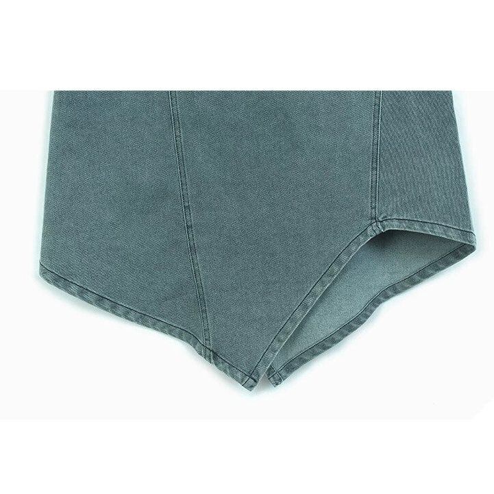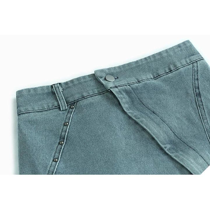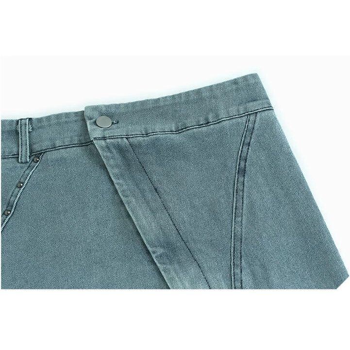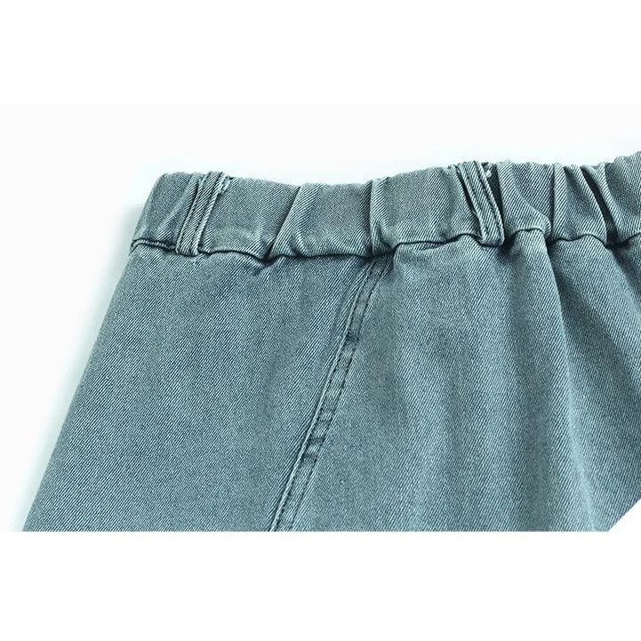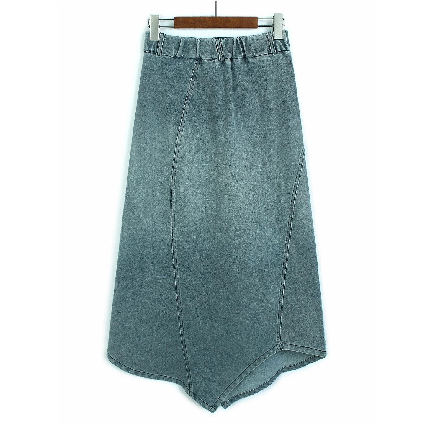 ASYMMETRIC PLACKET A-LINE DENIM MIDI SKIRT M-16500
