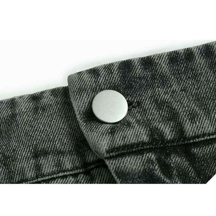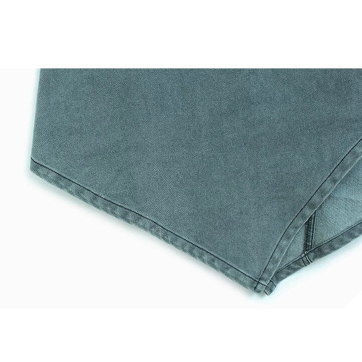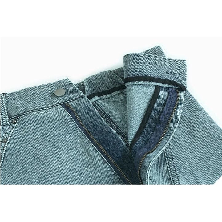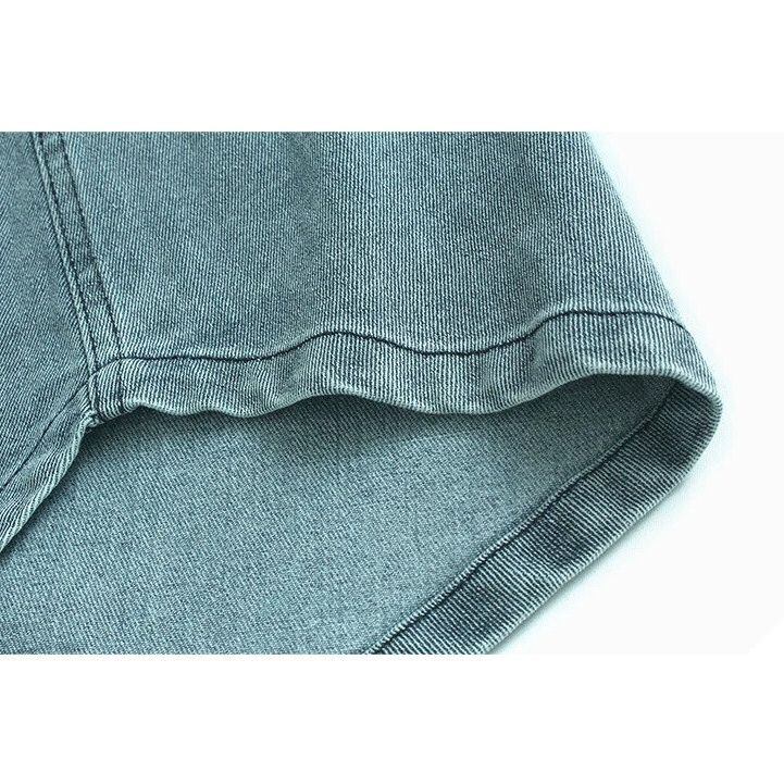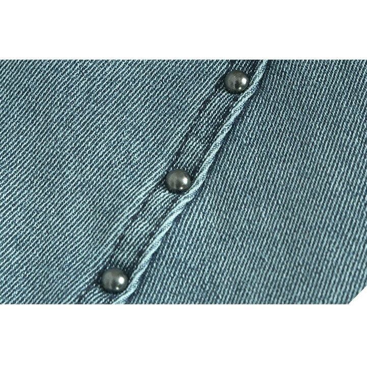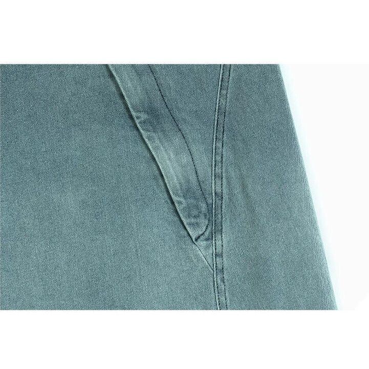ASYMMETRIC PLACKET A-LINE DENIM MIDI SKIRT M-16500