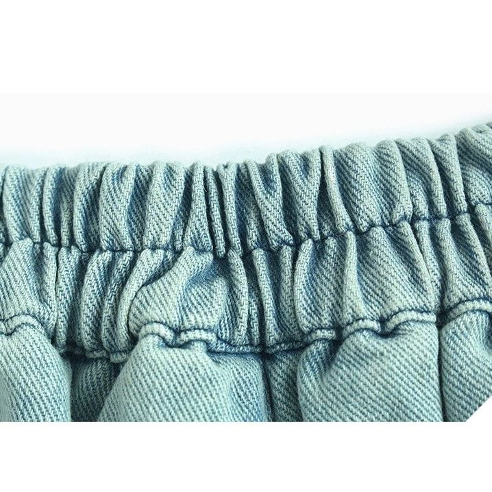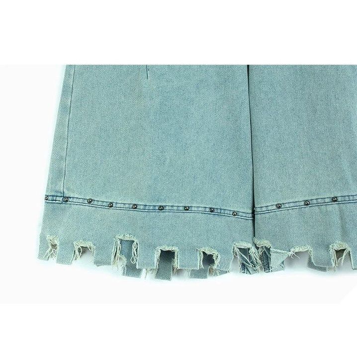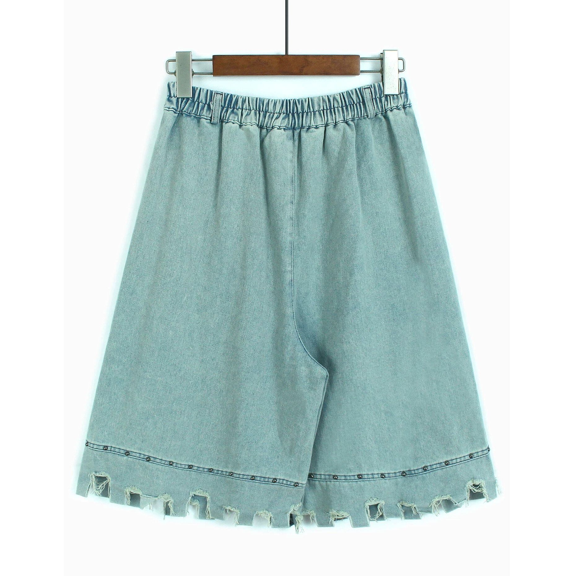 DISTRESSED BEAD FRINGE WIDE LEG DENIM SHORTS M-16502