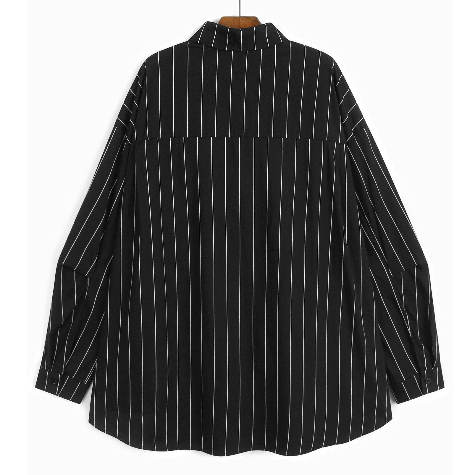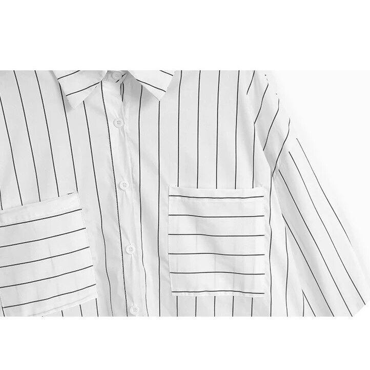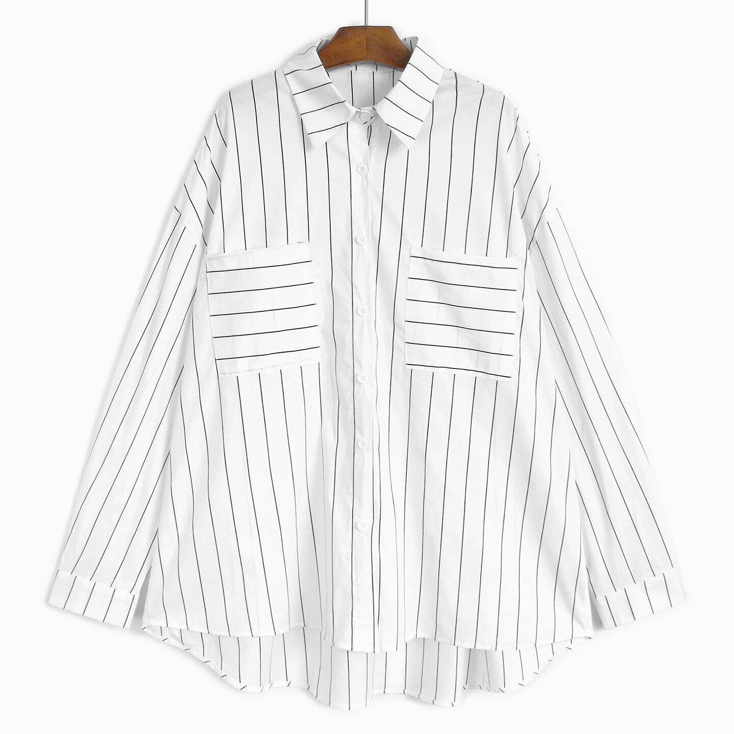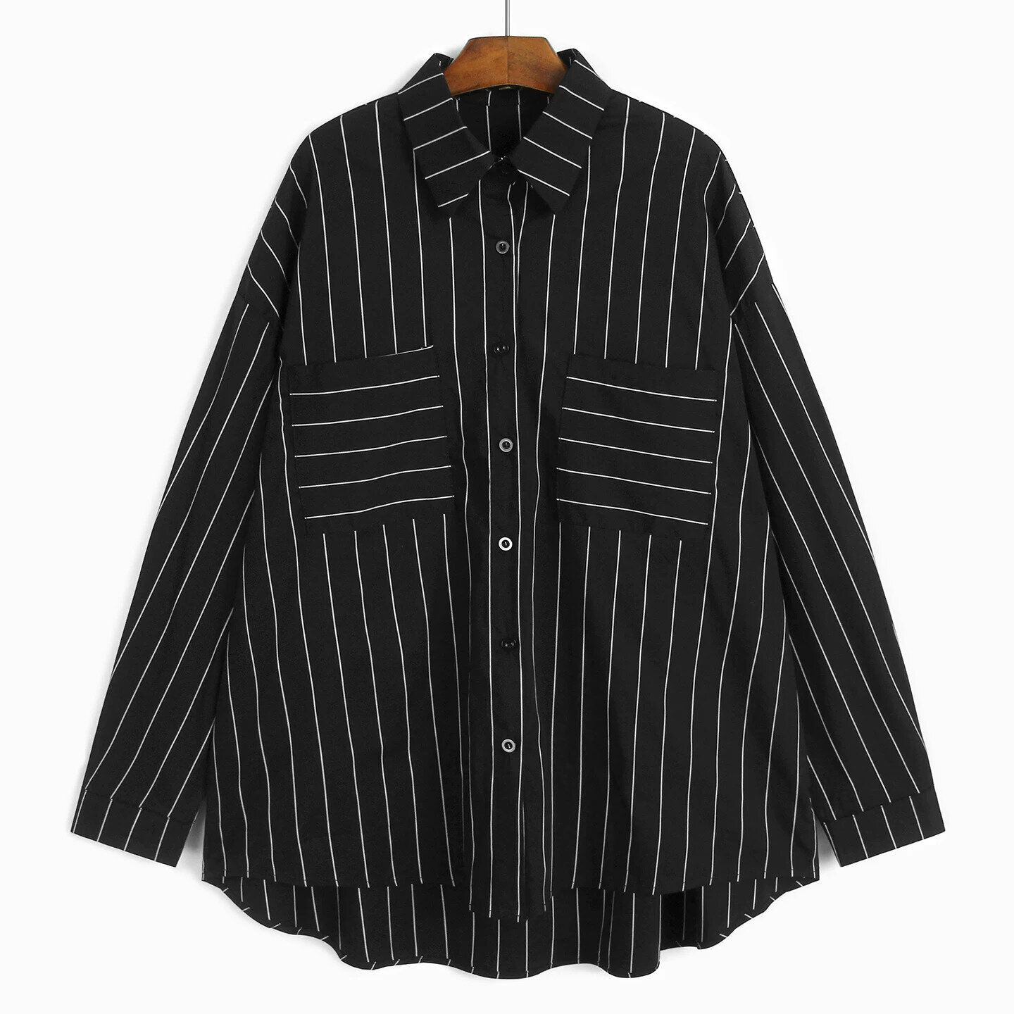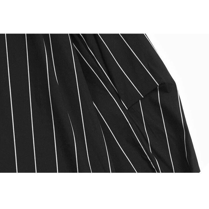 DOUBLE POCKET STRIPE LONG SLEEVE MIDI SHIRT M-16505