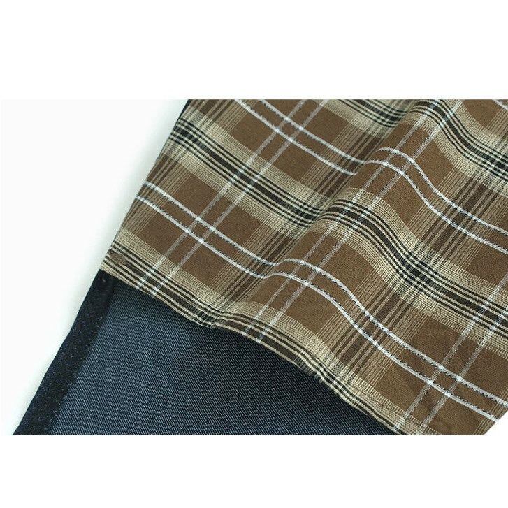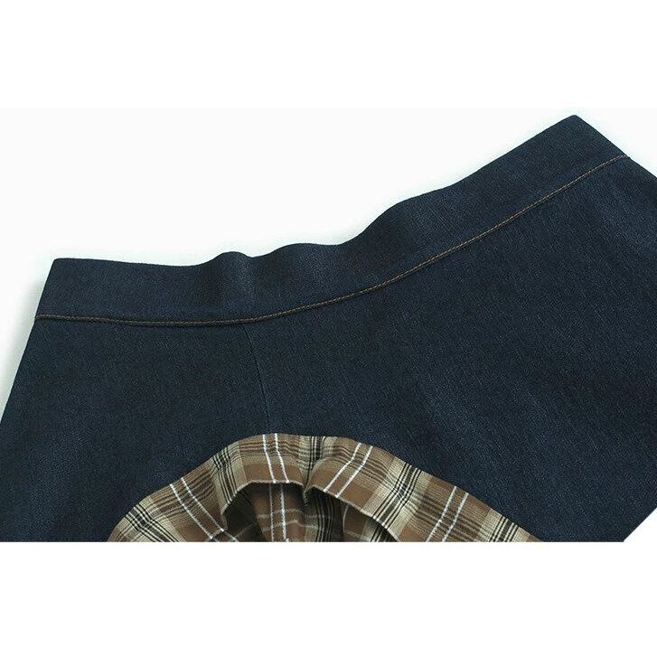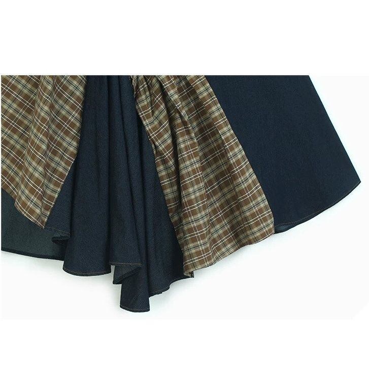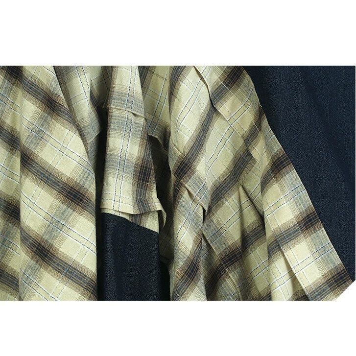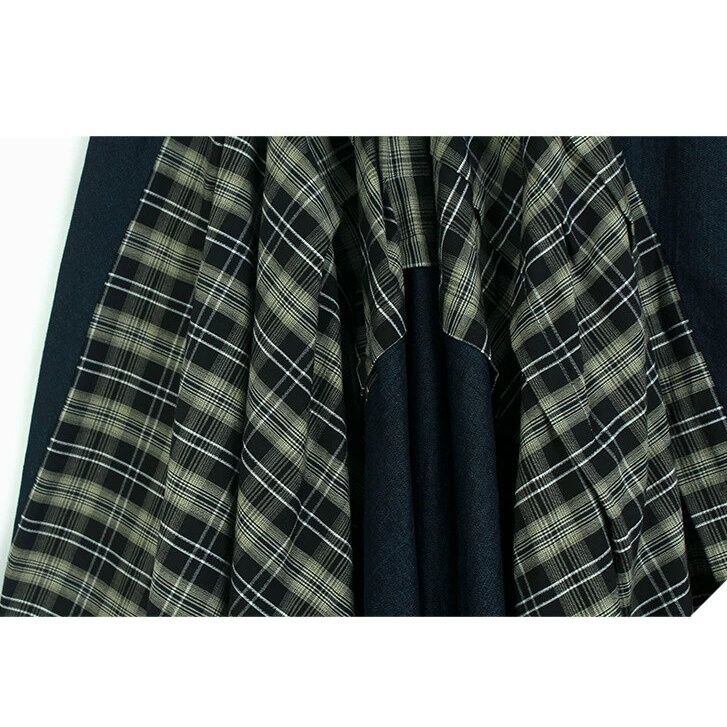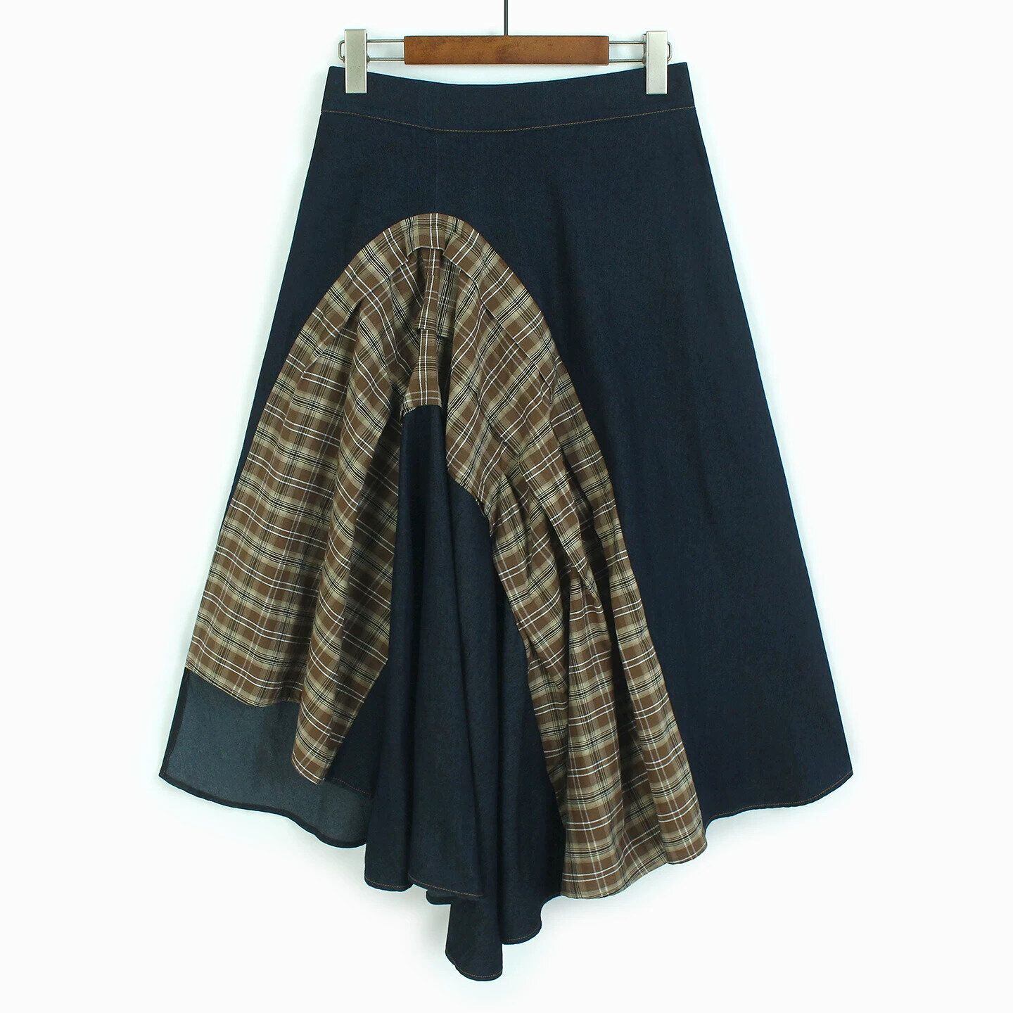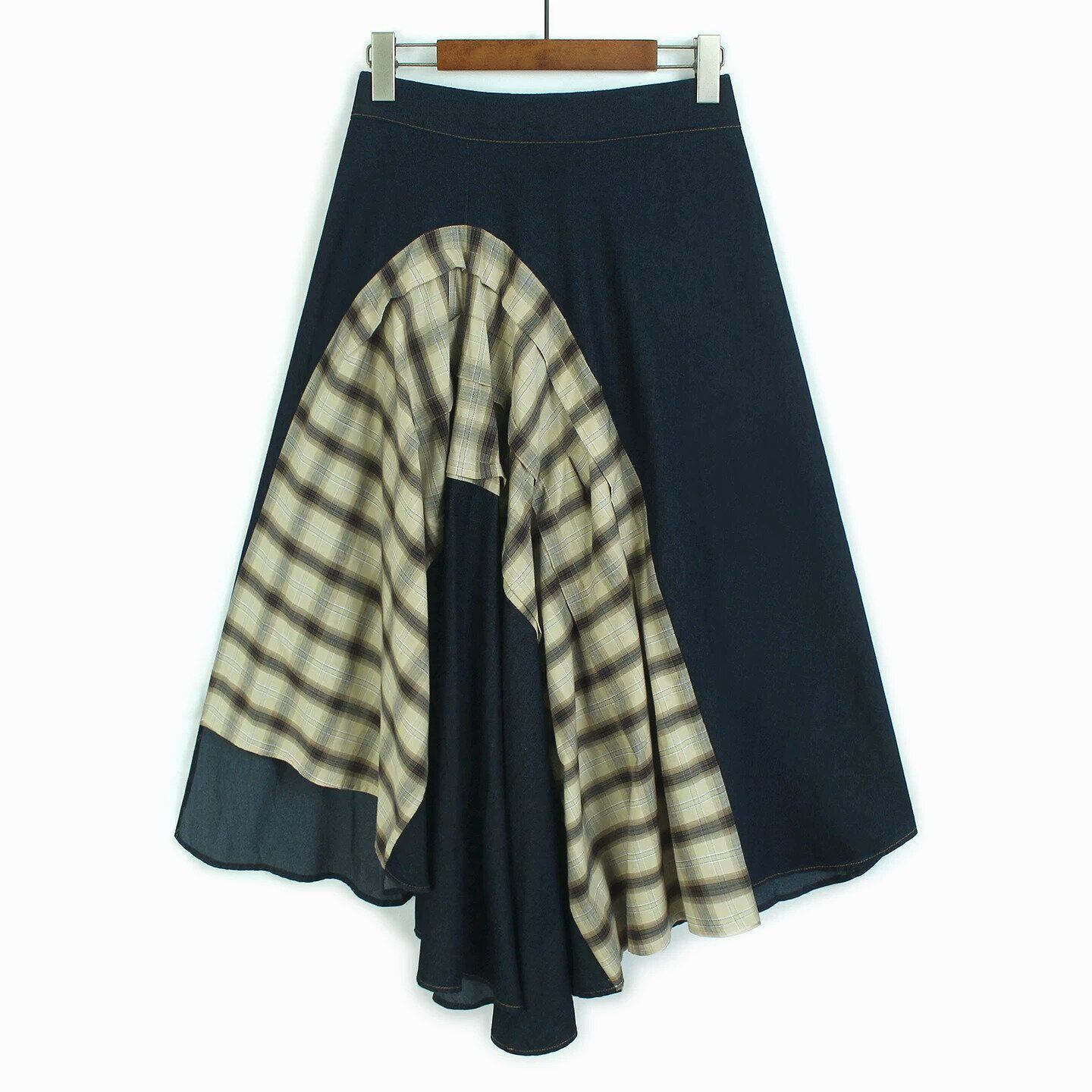 HIGH WAIST IRREGULAR PLAID DENIM MIDI SKIRT M-16519
