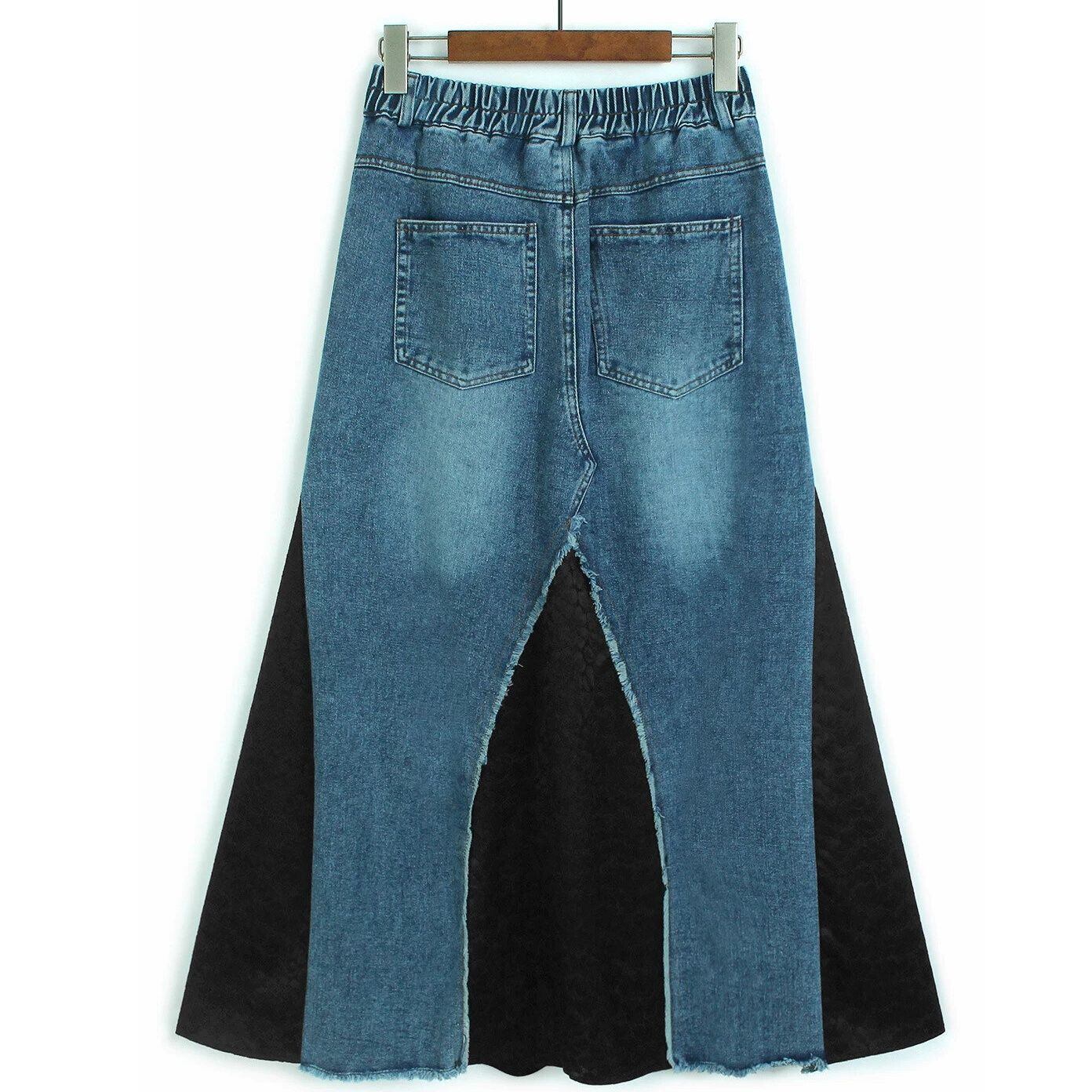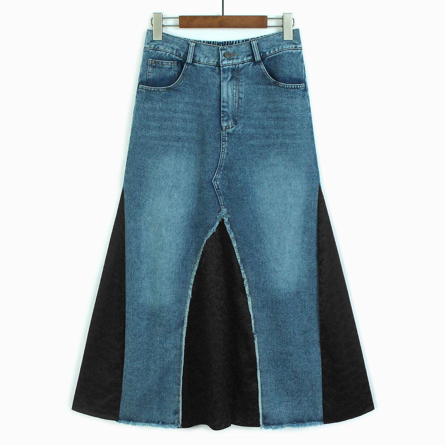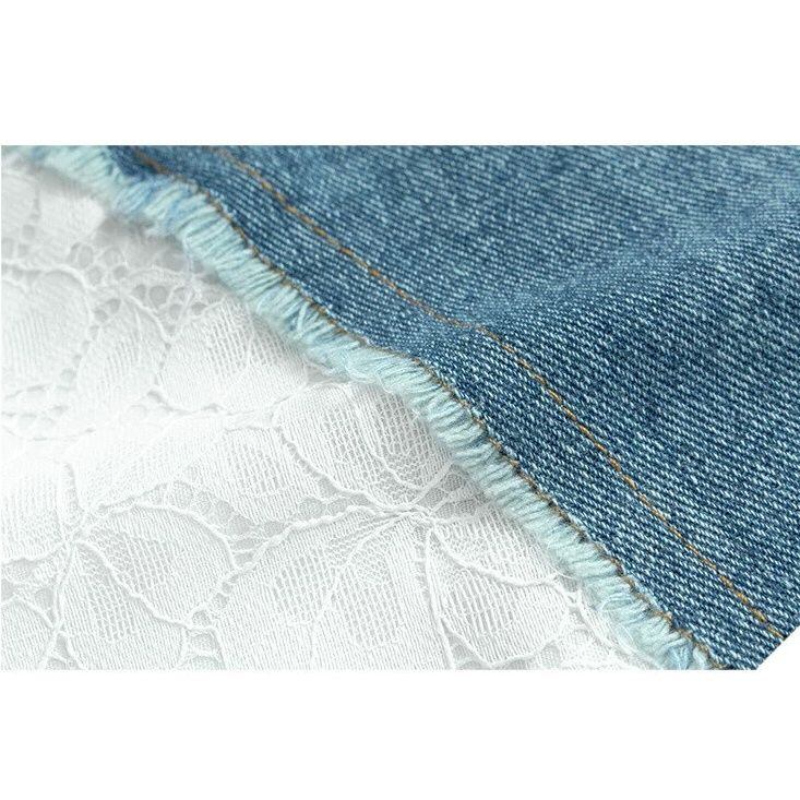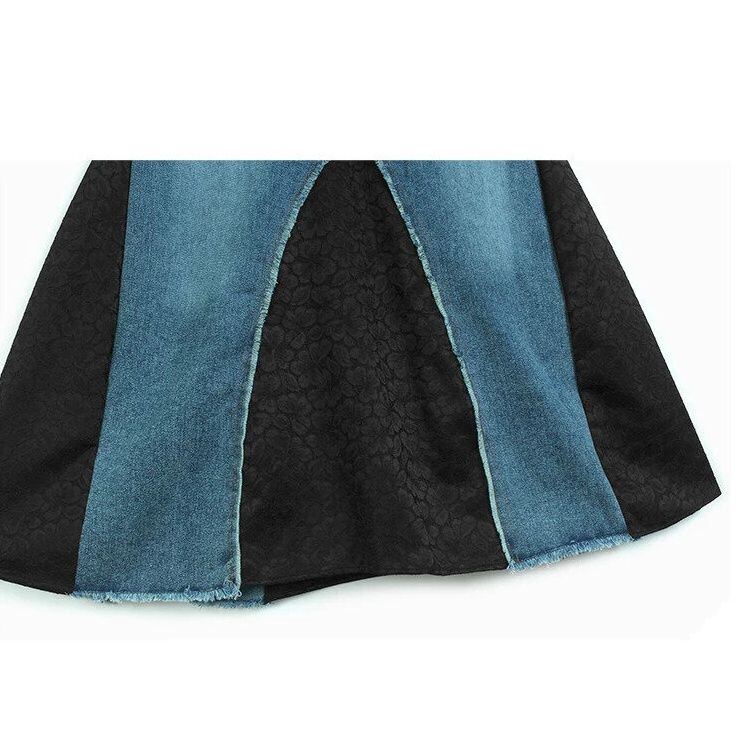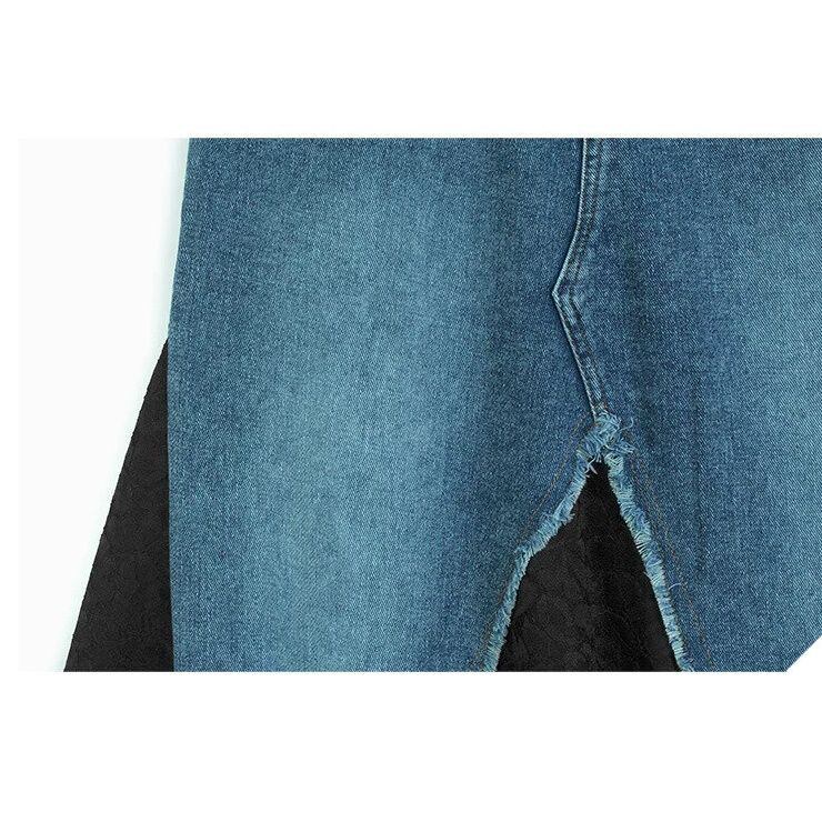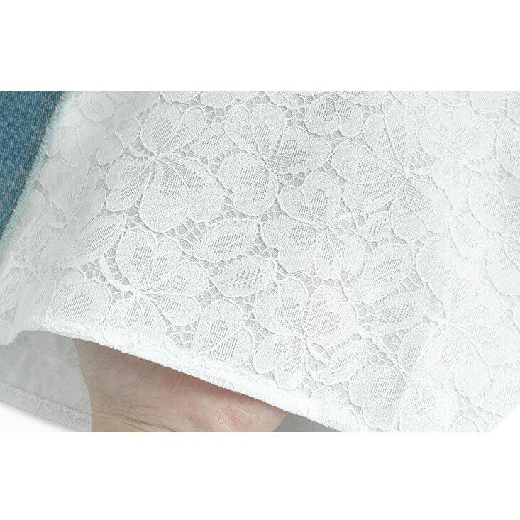 HIGH WAIST LACE CONTRAST DENIM A-LINE SKIRT M-16520