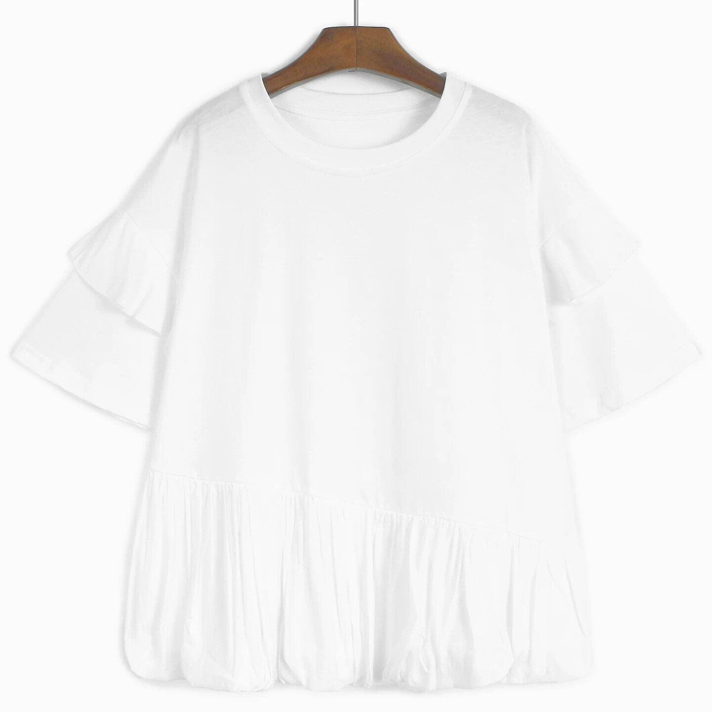 RUFFLE HEM GATHERED SHORT SLEEVE T-SHIRT M-16523
