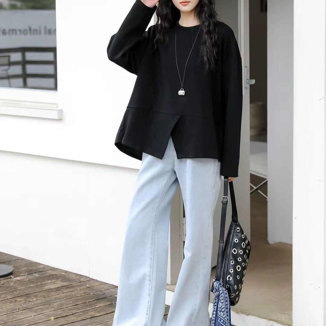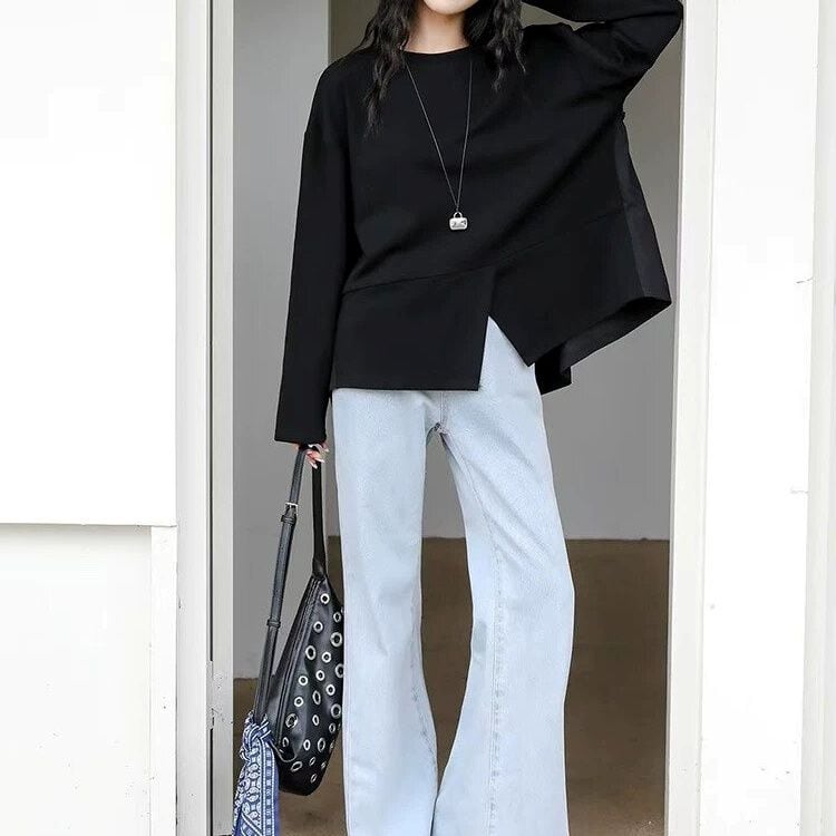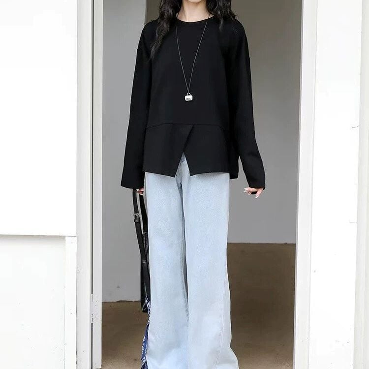 IRREGULAR HEM LONG SLEEVE RELAXED T-SHIRT M-16534