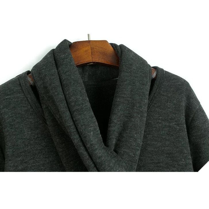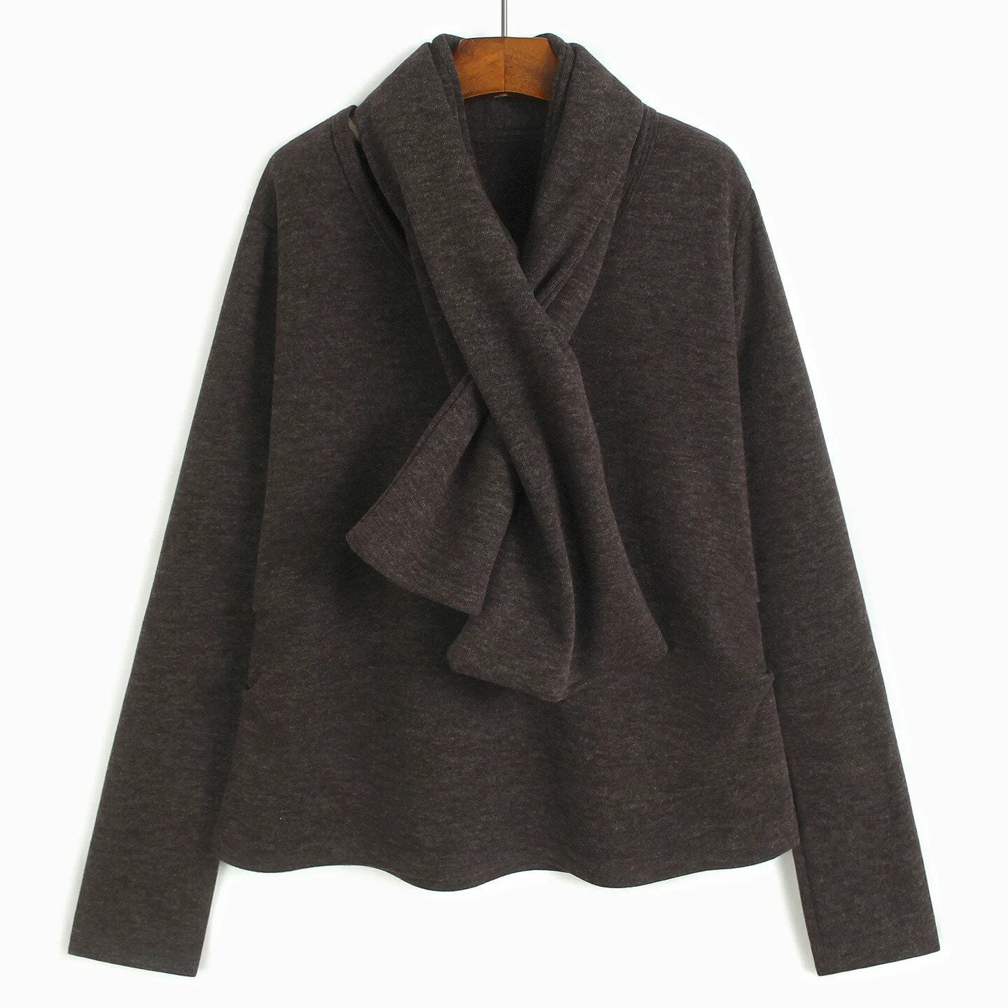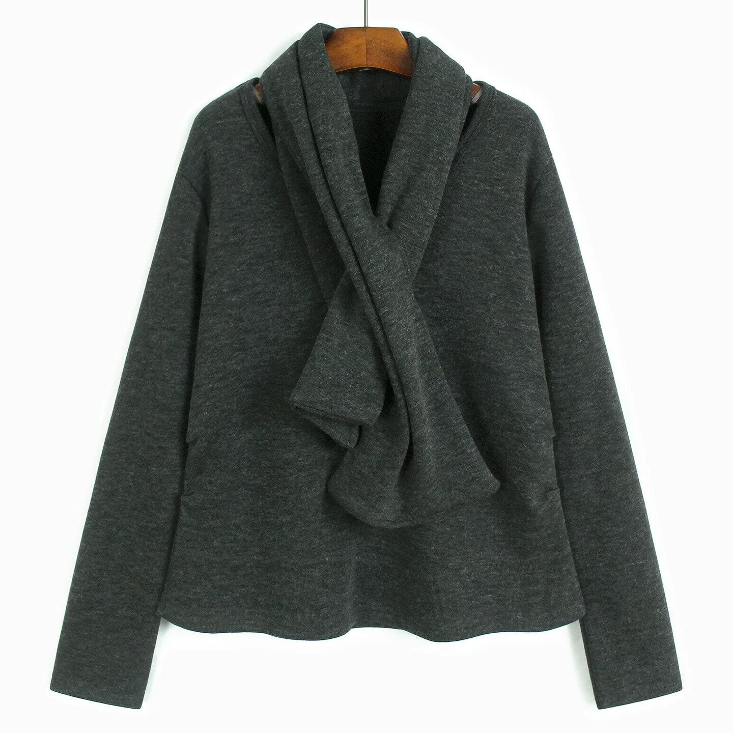SCARF NECK FLEECE LONG SLEEVE T-SHIRT M-16536