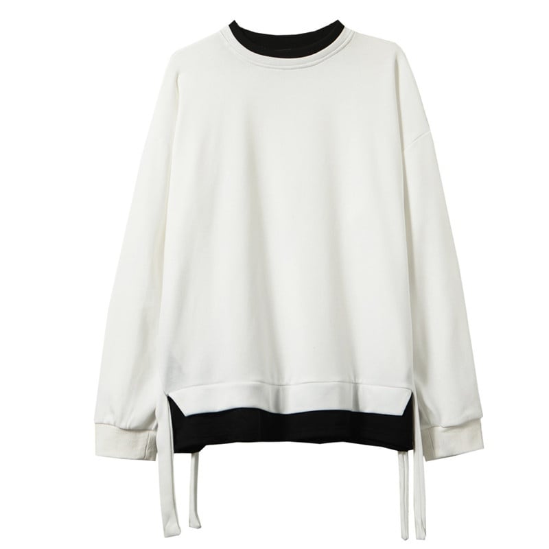 ホワイトとブラックの2枚の長袖スウェットシャツを重ね着したようなフェイクレイヤードデザインのトップスです。ドロップショルダーのゆったりとしたラインで、裾は両サイドにスリットが入っています。外側のスリットからはリボンが垂れるように付いていてアクセントになっています。色は外側がホワイトとブラックの2色から選べます。シンプルなカラーとデザインでコーディネートしやすいアイテムです。 SIZE:※測り方によって2-3cmの差が生じる場合がございます。 【M】バスト118cm 肩幅63cm 袖丈57cm 着丈72cm 【L】バスト122cm 肩幅64cm 袖丈58cm 着丈73cm 【XL】バスト126cm 肩幅65cm 袖丈59cm 着丈74cm 【2XL】バスト130cm 肩幅66cm 袖丈60cm 着丈75cm COLOR:Black、White 素材:綿55%、ポリエステル45% モデル着用サイズ:L モデル情報:身長180cm 体重65kg お届けについて こちらの商品は海外店舗より直接発送となる為、 ご決済から到着までは、多くの場合【10日-2週間前後】でお届けしております。 ※在庫状況や輸送の混雑により、4週間前後かかる場合がございます。 注意事項 ・商品在庫切れにより注文キャンセルとさせていただく恐れもございますので、予めご了承くださいませ。 ・仕入れ工場を変えることがあるため、記載サイズと若干異なる場合がございます。 ・商品の色味は、お手持ちのスマートフォンの画面によって実物と若干異なる場合がございます。 ・イメージ違いやサイズ交換等、お客さまご都合による交換、返品は対応出来かねます。 送料について 全国一律580円。ただし、10,000円以上のお買い物で送料無料となります。詳細は下記をご確認ください。 https://www.magniraff.com/blog/2020/07/07/101900 お支払い方法について ・クレジットカード決済(VISA/Mastercard/JCB/アメリカン・エクスプレス) ・あと払い(Pay ID) ・コンビニ決済/Pay-easy ※前払いのお支払い方法 ・銀行振込 ・キャリア決済(docomo/au/ソフトバンク/Y!mobile) https://www.magniraff.com/blog/2020/07/11/123636 当ショップのインスタグラム 新着商品やお得なクーポン情報をご紹介しておりますので是非フォロー及びいいね!をお願いします。コメントも大歓迎です! https://www.instagram.com/magniraff_official/ 公式LINEお友達募集中 【LINEお友達登録リンク】https://lin.ee/G0z7rP3 公式LINEでは、「お得なクーポン情報」や「新着商品のご紹介」などのキャンペーン情報を配信させて頂いております。 管理番号:S-001