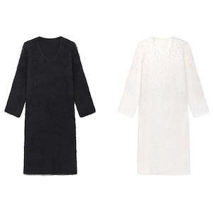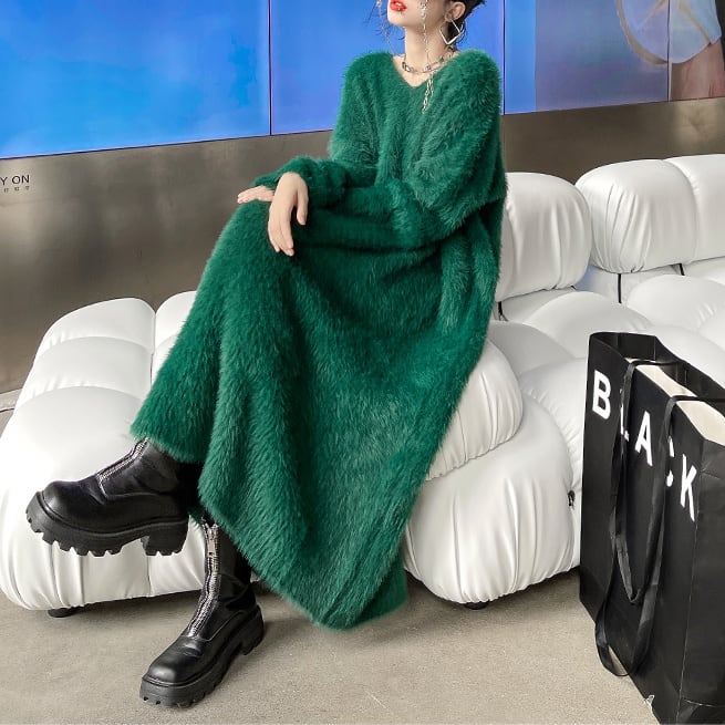 ゆったりとしたワイド幅の、Vネック・長袖・ロング丈ワンピースです。ミンクベルベットの柔らかく滑らかな質感で、心も体も心地よい暖かさに包まれます。シンプルなデザインで、アクセサリーやバックなど小物使いにアレンジが利きます。色はマグパイグリーン・ホワイト・ローズレッド・グラスグリーン・ブラックの5色から選べます。ルーズでセクシーな印象のカジュアルアイテムです。 SIZE:※測り方によって2-3cmの差が生じる場合がございます。 【S Size】バスト96cm 肩幅55cm 袖丈43cm 着丈106cm 【M Size】バスト98cm 肩幅56cm 袖丈44cm 着丈107cm 【L Size】バスト100cm 肩幅57cm 袖丈45cm 着丈108cm 【XL Size】バスト102cm 肩幅58cm 袖丈46cm 着丈109cm 【2XL Size】バスト104cm 肩幅59cm 袖丈47cm 着丈110cm COLOR:Deep Green、White、Pink、Black 素材:アクリル50%、ポリエステル50% モデル情報:身長169cm 体重53kg バスト78cm ウエスト64cm ヒップ84cm お届けについて こちらの商品は海外店舗より直接発送となる為、 ご決済から到着までは、多くの場合【10日-2週間前後】でお届けしております。 ※在庫状況や輸送の混雑により、4週間前後かかる場合がございます。 注意事項 ・商品在庫切れにより注文キャンセルとさせていただく恐れもございますので、予めご了承くださいませ。 ・仕入れ工場を変えることがあるため、記載サイズと若干異なる場合がございます。 ・商品の色味は、お手持ちのスマートフォンの画面によって実物と若干異なる場合がございます。 ・イメージ違いやサイズ交換等、お客さまご都合による交換、返品は対応出来かねます。 送料について 全国一律580円。ただし、10,000円以上のお買い物で送料無料となります。詳細は下記をご確認ください。 https://www.magniraff.com/blog/2020/07/07/101900 お支払い方法について ・クレジットカード決済(VISA/Mastercard/JCB/アメリカン・エクスプレス) ・あと払い(Pay ID) ・コンビニ決済/Pay-easy ※前払いのお支払い方法 ・銀行振込 ・キャリア決済(docomo/au/ソフトバンク/Y!mobile) https://www.magniraff.com/blog/2020/07/11/123636 当ショップのインスタグラム 新着商品やお得なクーポン情報をご紹介しておりますので是非フォロー及びいいね!をお願いします。コメントも大歓迎です! https://www.instagram.com/magniraff_official/ 公式LINEお友達募集中 【LINEお友達登録リンク】https://lin.ee/G0z7rP3 公式LINEでは、「お得なクーポン情報」や「新着商品のご紹介」などのキャンペーン情報を配信させて頂いております。 管理番号:M-3471