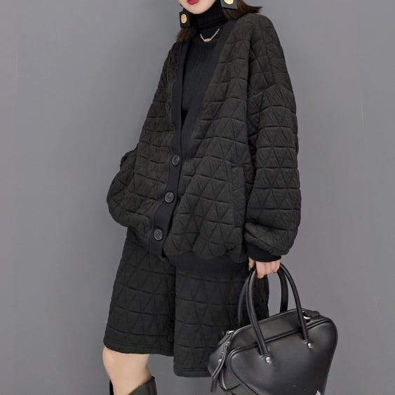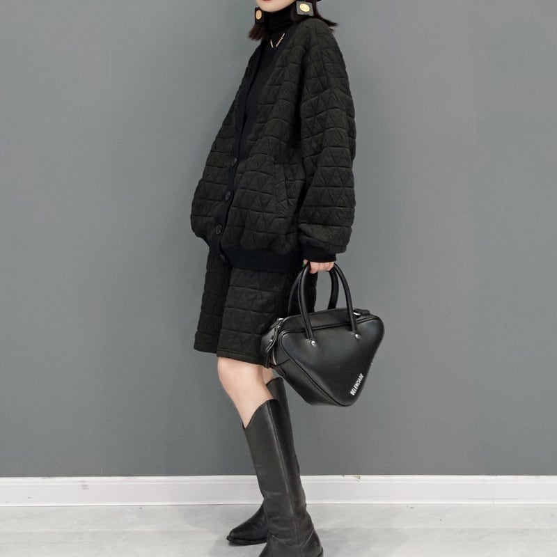 【即納商品】【数量限定】QUILTING V-NECK CARDIGAN + SHORTS SET 2pieces 2colors M-3941