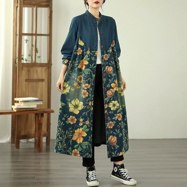 FLOWER PRINT MESH HOODED LONG WINDBREAKER COAT 1color M-5451
