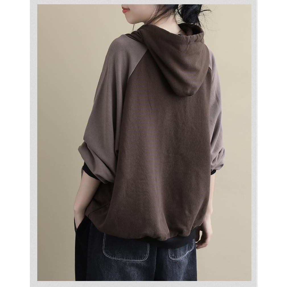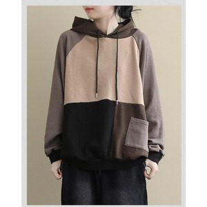 落ち着いた色味のスティッチがオシャレな、ラグランスリーブのフーディーです。パッチポケットとドローストリングの付きのフード、ゆったりとしたシルエットがキュートなアイテムです。色はコーヒー×ブラック・コーヒー×ブルーの2色から選べます。それぞれのカラーに、素材にベルベットをプラスしたものもあります。