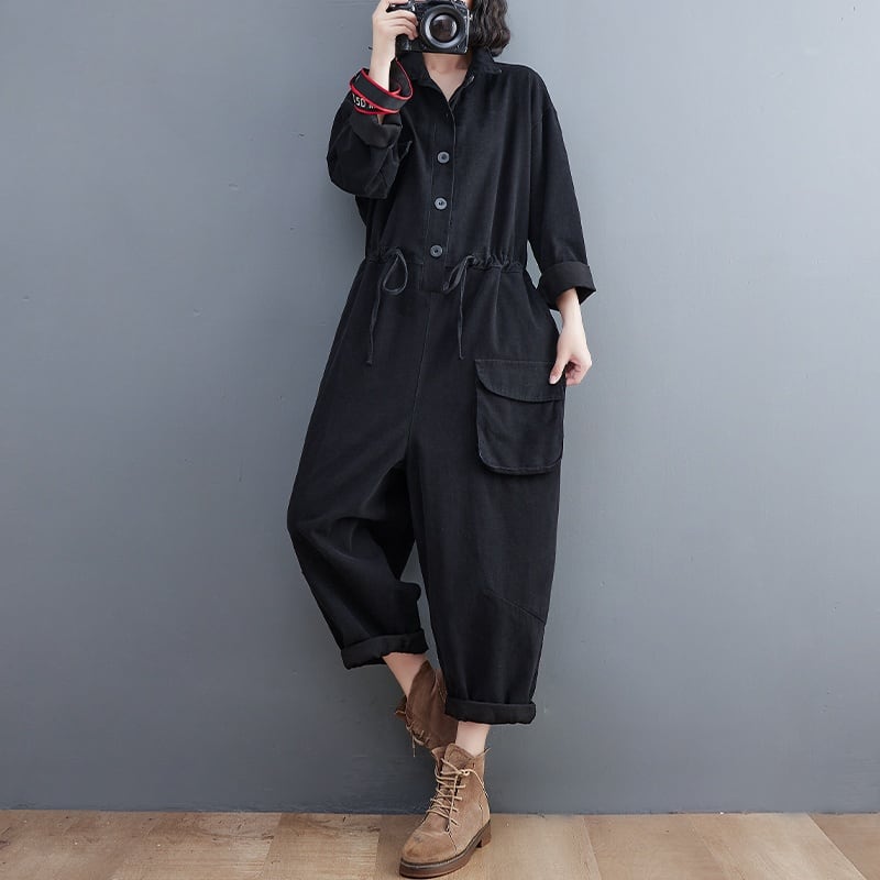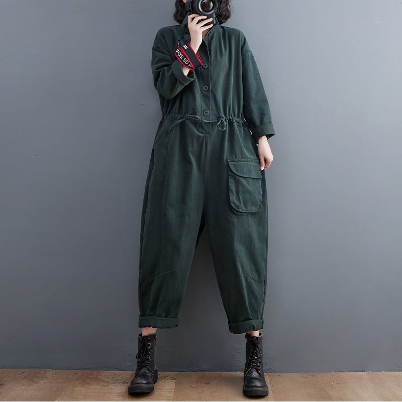 丸みのある立体フラップポケットがキュートな、ポロ襟・ハーフボタン・長袖・ワイドレッグのジャンプスーツです。ウエストにはドローストリングが付いて、シルエットを調節できます。色はグリーン・コーヒー・ブラックの3色から選べます。 SIZE:※測り方によって2-3cmの差が生じる場合がございます。 【L】バスト116cm 肩幅51cm 袖丈50cm ヒップ117cm 着丈131cm 【XL】バスト120cm 肩幅52cm 袖丈51cm ヒップ121cm 着丈132cm 【XXL】バスト124cm 肩幅53cm 袖丈52cm ヒップ125cm 着丈133cm COLOR:Green、Black、Brown 素材:綿100% モデル情報:身長161cm 体重49kg お届けについて こちらの商品は海外店舗より直接発送となる為、 ご決済から到着までは、多くの場合【10日-2週間前後】でお届けしております。 ※在庫状況や輸送の混雑により、4週間前後かかる場合がございます。 注意事項 ・商品在庫切れにより注文キャンセルとさせていただく恐れもございますので、予めご了承くださいませ。 ・仕入れ工場を変えることがあるため、記載サイズと若干異なる場合がございます。 ・商品の色味は、お手持ちのスマートフォンの画面によって実物と若干異なる場合がございます。 ・イメージ違いやサイズ交換等、お客さまご都合による交換、返品は対応出来かねます。 送料について 全国一律580円。ただし10,000円以上のご注文で送料無料となります。 https://www.magniraff.com/blog/2020/07/07/101900 お支払い方法について ・クレジットカード決済(VISA/Mastercard/JCB/アメリカン・エクスプレス) ・あと払い(Pay ID) ・コンビニ決済/Pay-easy ※前払いのお支払い方法 ・銀行振込 ・キャリア決済(docomo/au/ソフトバンク/Y!mobile) https://www.magniraff.com/blog/2020/07/11/123636 当ショップのインスタグラム 新着商品やお得なクーポン情報をご紹介しておりますので是非フォロー及びいいね!をお願いします。コメントも大歓迎です! https://www.instagram.com/magniraff_official/ 公式LINEお友達募集中 【LINEお友達登録リンク】https://lin.ee/G0z7rP3 公式LINEでは、「お得なクーポン情報」や「新着商品のご紹介」などのキャンペーン情報を配信させて頂いております。 管理番号:M-6196