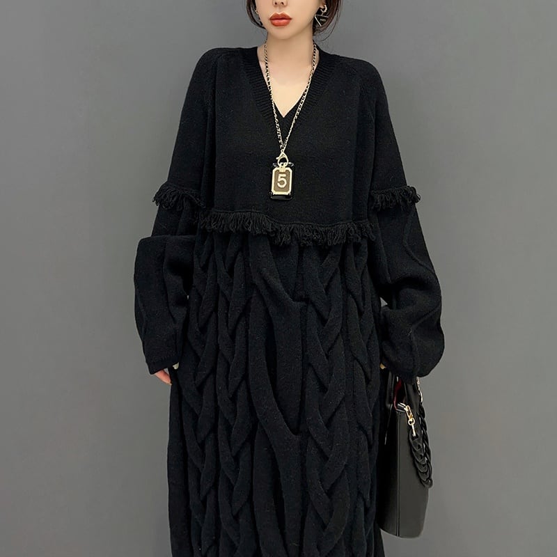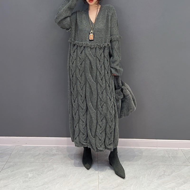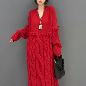 ウエストの高い位置と袖の肘上にフリンジのラインが施された、Vネック・長袖・ロング丈のニットワンピースです。フリンジラインから下はケーブル編みで、ゆったりとしたストレートのシルエットが美しいアイテムです。色はレッドとブラックの2色から選べます。 SIZE:※測り方によって2-3cmの差が生じる場合がございます。 COLOR:Red、Black 素材:ポリエステル、その他 モデル着用サイズ:M 商品の詳細寸法情報を希望される方はこちらのリクエストフォームより直接問い合わせをお願いいたします。 https://forms.gle/UkrQzRmGkoRCfNoy8 モデル情報:身長158cm 体重57kg お届けについて こちらの商品は海外店舗より直接発送となる為、 ご決済から到着までは、多くの場合【10日-2週間前後】でお届けしております。 ※在庫状況や輸送の混雑により、4週間前後かかる場合がございます。 注意事項 ・商品在庫切れにより注文キャンセルとさせていただく恐れもございますので、予めご了承くださいませ。 ・仕入れ工場を変えることがあるため、記載サイズと若干異なる場合がございます。 ・商品の色味は、お手持ちのスマートフォンの画面によって実物と若干異なる場合がございます。 ・イメージ違いやサイズ交換等、お客さまご都合による交換、返品は対応出来かねます。 送料について 全国一律580円。ただし10,000円以上のご注文で送料無料となります。 https://www.magniraff.com/blog/2020/07/07/101900 お支払い方法について ・クレジットカード決済(VISA/Mastercard/JCB/アメリカン・エクスプレス/ Diners Club) ・後払い決済 ・コンビニ決済/Pay-easy ※前払いのお支払い方法 ・銀行振込 ・キャリア決済(d払い/au PAY(auかんたん決済)/ソフトバンク・ワイモバイルまとめて支払い) https://www.magniraff.com/blog/2020/07/11/123636 当ショップのインスタグラム 新着商品やお得なクーポン情報をご紹介しておりますので是非フォロー及びいいね!をお願いします。コメントも大歓迎です! https://www.instagram.com/magniraff_official/ 公式LINEお友達募集中 【LINEお友達登録リンク】https://lin.ee/G0z7rP3 公式LINEでは、「お得なクーポン情報」や「新着商品のご紹介」などのキャンペーン情報を配信させて頂いております。 管理番号:M-6585