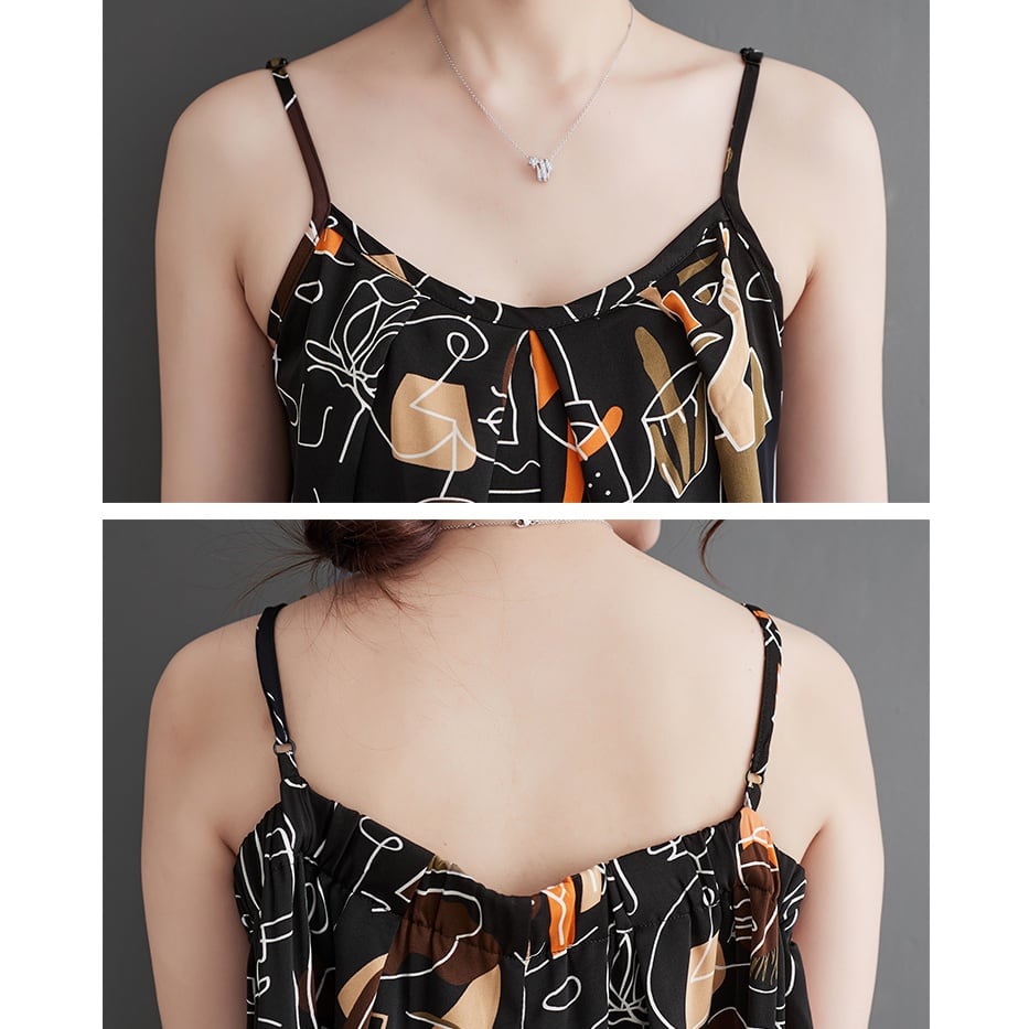 ILLUSTRATION PRINT STRAP WIDE LEG JUMPSUIT 1color M-7347