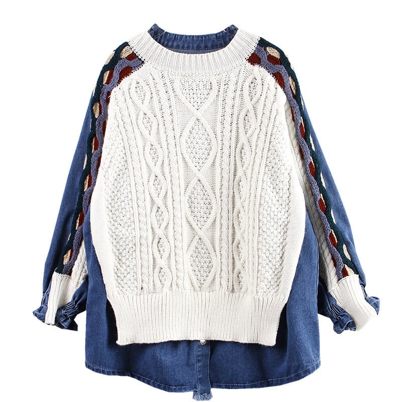 デニムシャツのフロントにラウンドネックのセーターがスティッチされたデザインが目を惹く、プルオーバートップです。ゴム加工された袖口や、やや広がるAラインのシルエットがキュートなアイテムです。色はホワイトとブルーの2色から選べます。 SIZE:※測り方によって2-3cmの差が生じる場合がございます。 【S】バスト116cm 肩幅39cm 袖丈47cm 着丈73cm 【M】バスト118cm 肩幅40cm 袖丈48cm 着丈75cm 【L】バスト120cm 肩幅41cm 袖丈49cm 着丈77cm COLOR:White、Blue 素材:ポリエステル60%、綿40% モデル情報:身長169cm 体重53kg バスト78cm ウエスト64cm ヒップ84cm お届けについて こちらの商品は海外店舗より直接発送となる為、 ご決済から到着までは、多くの場合【10日-2週間前後】でお届けしております。 ※在庫状況や輸送の混雑により、4週間前後かかる場合がございます。 注意事項 ・商品在庫切れにより注文キャンセルとさせていただく恐れもございますので、予めご了承くださいませ。 ・仕入れ工場を変えることがあるため、記載サイズと若干異なる場合がございます。 ・商品の色味は、お手持ちのスマートフォンの画面によって実物と若干異なる場合がございます。 ・イメージ違いやサイズ交換等、お客さまご都合による交換、返品は対応出来かねます。 送料について 全国一律580円。ただし10,000円以上のご注文で送料無料となります。 https://www.magniraff.com/blog/2020/07/07/101900 お支払い方法について ・クレジットカード決済(VISA/Mastercard/JCB/アメリカン・エクスプレス) ・あと払い(Pay ID) ・コンビニ決済/Pay-easy ※前払いのお支払い方法 ・銀行振込 ・キャリア決済(docomo/au/ソフトバンク/Y!mobile) https://www.magniraff.com/blog/2020/07/11/123636 当ショップのインスタグラム 新着商品やお得なクーポン情報をご紹介しておりますので是非フォロー及びいいね!をお願いします。コメントも大歓迎です! https://www.instagram.com/magniraff_official/ 公式LINEお友達募集中 【LINEお友達登録リンク】https://lin.ee/G0z7rP3 公式LINEでは、「お得なクーポン情報」や「新着商品のご紹介」などのキャンペーン情報を配信させて頂いております。 管理番号:M-7840