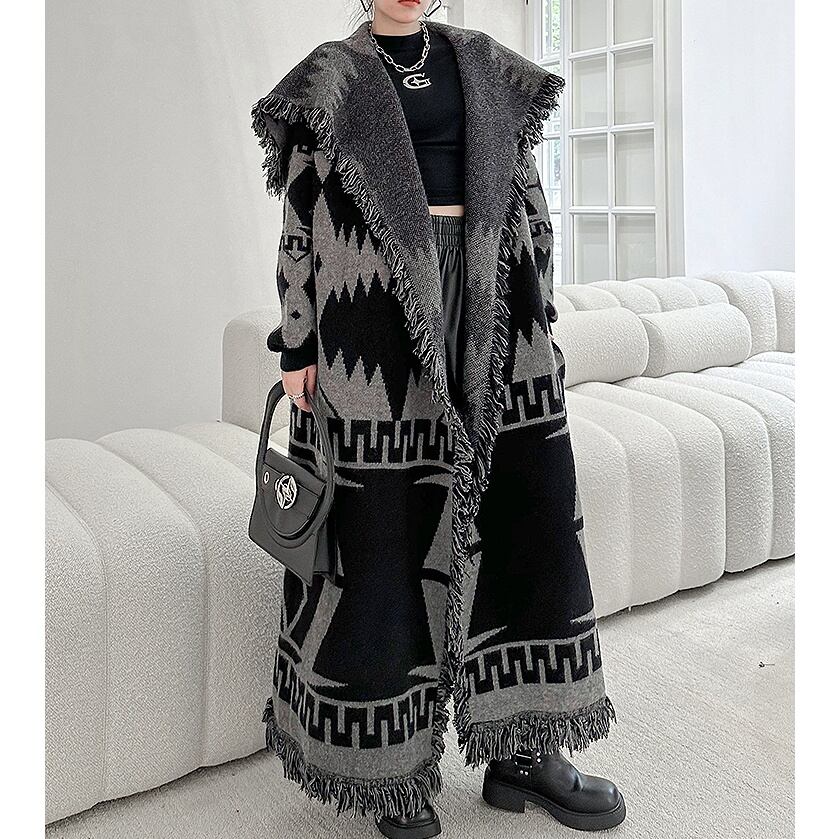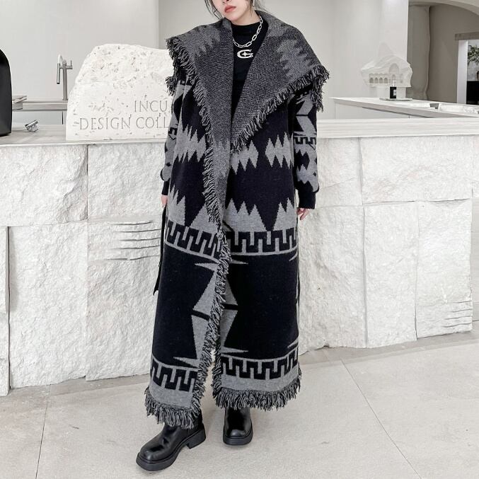 RETRO ETHNIC FRINGE EDGE LONG KNIT GOWN COAT 1color M-8042