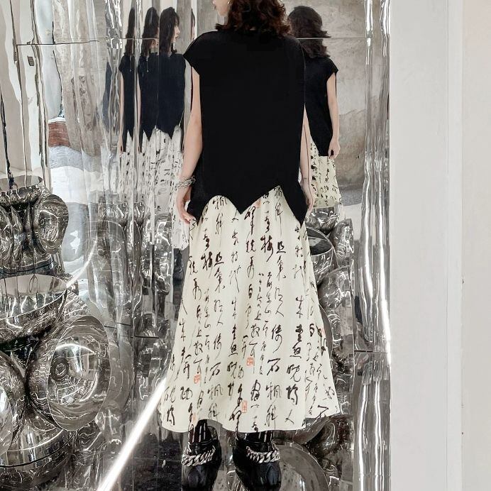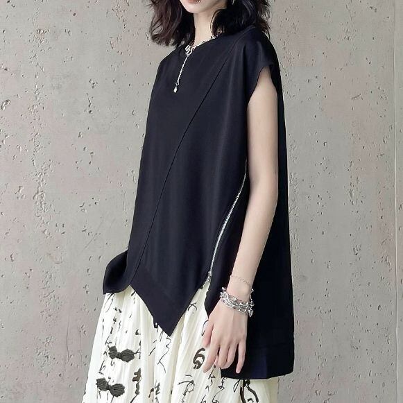 BLACK FRENCH SLEEVES ZIP IRREGULAR HEM DESIGN TOP 1color M-9273
