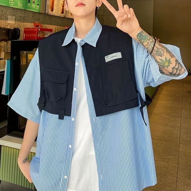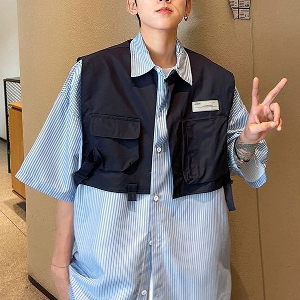 ユーティリティベストが付いたストライプシャツ。機能性とデザイン性を兼ね備えたアイテムです。 SIZE:※測り方によって2-3cmの差が生じる場合がございます。 【S】バスト112cm 肩幅59.5cm 袖丈23cm 着丈68.5cm 【M】バスト116cm 肩幅61cm 袖丈24cm 着丈70cm 【L】バスト120cm 肩幅62.5cm 袖丈25cm 着丈72cm 【XL】バスト124cm 肩幅64cm 袖丈26cm 着丈74cm 【2XL】バスト128cm 肩幅65.5cm 袖丈26cm 着丈76cm COLOR:Blue、Green 素材:ポリエステル100% お届けについて こちらの商品は海外店舗より直接発送となる為、 ご決済から到着までは、多くの場合【10日-2週間前後】でお届けしております。 ※在庫状況や輸送の混雑により、4週間前後かかる場合がございます。 注意事項 ・商品在庫切れにより注文キャンセルとさせていただく恐れもございますので、予めご了承くださいませ。 ・商品の色味は、お手持ちのスマートフォンの画面によって実物と若干異なる場合がございます。 ・イメージ違いやサイズ交換等、お客さまご都合による交換・返品はご遠慮ください。 送料について 全国一律580円。ただし10,000円以上のご注文で送料無料となります。 お支払い方法について ・クレジットカード決済(VISA/Mastercard/JCB/アメリカン・エクスプレス) ・コンビニ決済/Pay-easy ※前払いのお支払い方法 ・あと払い(Pay ID) ・キャリア決済(docomo/au/ソフトバンク/Y!mobile) 管理番号:S-834