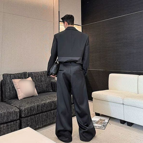 【Men】DECONSTRUCTED ACETATE SHOULDER PADS SUIT WIDE-LEG PANTS SETUP S-1203