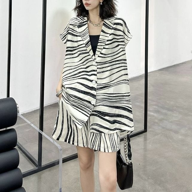 ZEBRA STRIPE FRENCH SLEEVES JACKET & SHORTS SET 2pieces 1color M-9941
