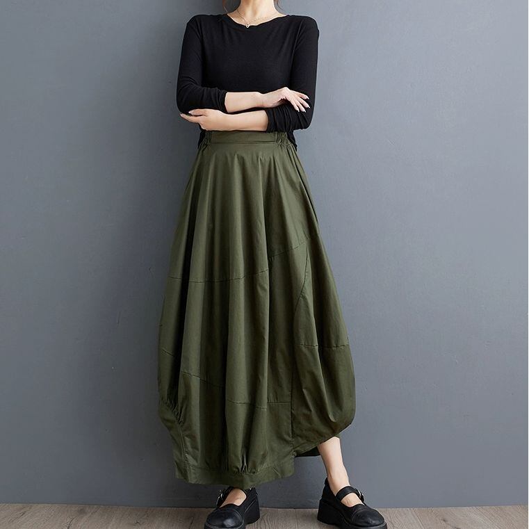 SOLID ASYMMETRIC LANTERN LONG SKIRT 2colors M-10094