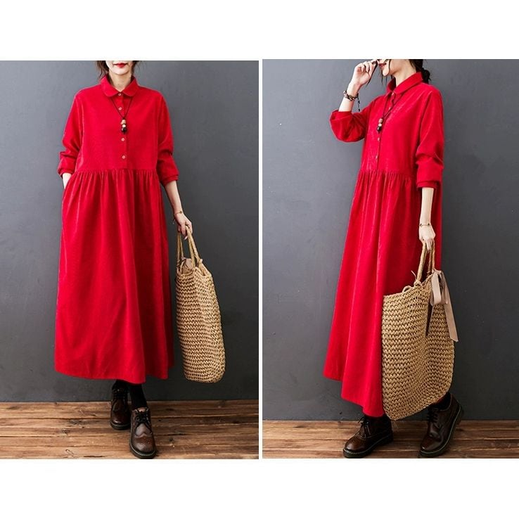 コーデュロイ素材が温かみのある、ポロ襟・ハーフボタン・長袖・ロング丈のシャツワンピースです。ウエストの切り返しにギャザーが入った、足長効果の期待できるシルエットが美しいアイテムです。色は、レッド・ブルー・ブラックの3色から選べます。 SIZE:※測り方によって2-3cmの差が生じる場合がございます。 【M】バスト100cm 肩幅38cm 袖丈56cm 袖幅23cm 裾幅200cm 着丈117cm 【L】バスト104cm 肩幅39cm 袖丈57cm 袖幅24cm 裾幅204cm 着丈118cm 【XL】バスト108cm 肩幅40cm 袖丈58cm 袖幅25cm 裾幅208cm 着丈119cm 【2XL】バスト112cm 肩幅41cm 袖丈59cm 袖幅26cm 裾幅212cm 着丈120cm COLOR:Red、Navy、Black 素材:ポリエステル100% モデル着用サイズ:L モデル情報:身長161cm 体重49kg STYLE CALENDAR:春〇 夏△ 秋◎ 冬◎ お届けについて こちらの商品は海外店舗より直接発送となる為、 ご決済から到着までは、多くの場合【10日-2週間前後】でお届けしております。 ※在庫状況や輸送の混雑により、4週間前後かかる場合がございます。 注意事項 ・商品在庫切れにより注文キャンセルとさせていただく恐れもございますので、予めご了承くださいませ。 ・仕入れ工場を変えることがあるため、記載サイズと若干異なる場合がございます。 ・商品の色味は、お手持ちのスマートフォンの画面によって実物と若干異なる場合がございます。 ・イメージ違いやサイズ交換等、お客さまご都合による交換・返品はご遠慮ください。 送料について 全国一律580円。ただし10,000円以上のご注文で送料無料となります。 お支払い方法について ・クレジットカード決済(VISA/Mastercard/JCB/アメリカン・エクスプレス) ・コンビニ決済/Pay-easy ※前払いのお支払い方法 ・あと払い(Pay ID) ・キャリア決済(docomo/au/ソフトバンク/Y!mobile) 管理番号:M-10112