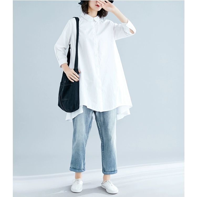 ふんわりと広がるAラインのシルエットがキュートな、タイニーカラー・7分袖・ハイローヘムのチュニックシャツです。単色のシンプルなデザインで、何にでも合わせやすいカジュアルなアイテムです。色は、ブラックとホワイトの2色から選べます。 SIZE:※測り方によって2-3cmの差が生じる場合がございます。 【L】バスト114cm 肩幅42cm 袖丈46cm 着丈94cm 【XL】バスト120cm 肩幅43.5cm 袖丈47cm 着丈95cm COLOR:White、Black 素材:ポリエステル60%、綿40% モデル着用サイズ:L モデル情報:身長161cm 体重49kg STYLE CALENDAR:春◎ 夏〇 秋〇 冬〇 お届けについて こちらの商品は海外店舗より直接発送となる為、 ご決済から到着までは、多くの場合【10日-2週間前後】でお届けしております。 ※在庫状況や輸送の混雑により、4週間前後かかる場合がございます。 注意事項 ・商品在庫切れにより注文キャンセルとさせていただく恐れもございますので、予めご了承くださいませ。 ・仕入れ工場を変えることがあるため、記載サイズと若干異なる場合がございます。 ・商品の色味は、お手持ちのスマートフォンの画面によって実物と若干異なる場合がございます。 ・イメージ違いやサイズ交換等、お客さまご都合による交換・返品はご遠慮ください。 送料について 全国一律580円。ただし10,000円以上のご注文で送料無料となります。 お支払い方法について ・クレジットカード決済(VISA/Mastercard/JCB/アメリカン・エクスプレス) ・コンビニ決済/Pay-easy ※前払いのお支払い方法 ・あと払い(Pay ID) ・キャリア決済(docomo/au/ソフトバンク/Y!mobile) 管理番号:M-10123