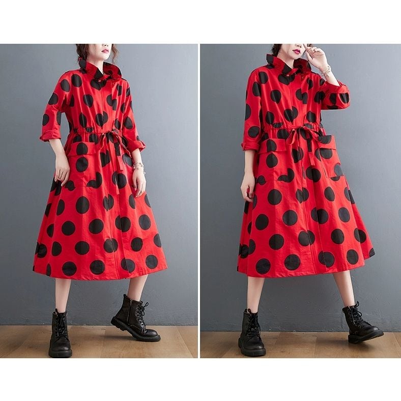 大きなブラックのドット柄が目を惹く、オフスタンドカラー・長袖・ミドル丈のウインドブレーカーコートです。フルジップ+ウエストにドローストリングが付いた、Aラインのシルエットがキュートなアイテムです。色は、レッドとキャラメルの2色から選べます。 SIZE:※測り方によって2-3cmの差が生じる場合がございます。 【M】バスト148cm 肩幅48cm 袖丈49cm 裾周り214cm 着丈109cm 【L】バスト152cm 肩幅49cm 袖丈50cm 裾周り218cm 着丈110cm 【XL】バスト156cm 肩幅50cm 袖丈51cm 裾周り222cm 着丈111cm COLOR:Red、Brown 素材:ポリエステル60%、綿40% モデル着用サイズ:L モデル情報:身長161cm 体重49kg お届けについて こちらの商品は海外店舗より直接発送となる為、 ご決済から到着までは、多くの場合【10日-2週間前後】でお届けしております。 ※在庫状況や輸送の混雑により、4週間前後かかる場合がございます。 注意事項 ・商品在庫切れにより注文キャンセルとさせていただく恐れもございますので、予めご了承くださいませ。 ・仕入れ工場を変えることがあるため、記載サイズと若干異なる場合がございます。 ・商品の色味は、お手持ちのスマートフォンの画面によって実物と若干異なる場合がございます。 ・イメージ違いやサイズ交換等、お客さまご都合による交換・返品はご遠慮ください。 送料について 全国一律580円。ただし10,000円以上のご注文で送料無料となります。 お支払い方法について ・クレジットカード決済(VISA/Mastercard/JCB/アメリカン・エクスプレス/ Diners Club) ・コンビニ決済/Pay-easy ※前払いのお支払い方法 ・Pay ID あと払い(コンビニ払い、口座振替)※あと払いのお支払い方法 ・キャリア決済(d払い/au PAY(auかんたん決済)/ソフトバンク・ワイモバイルまとめて支払い) 管理番号:M-10149