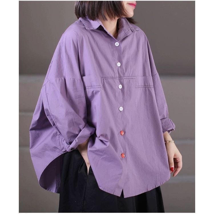 LILAC DROP SHOULDER LONG SLEEVES DESIGN SHIRT 1color M-10288