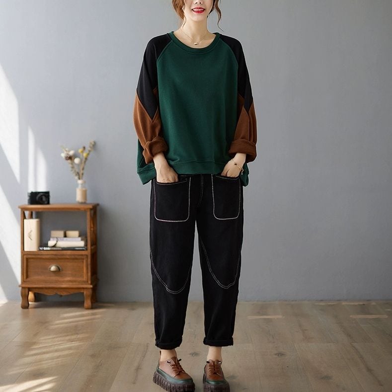 ブラック・グリーン・ブラウンの3色を使ったスティッチデザインがお洒落な、ラウンドネック・長袖・スウェットシャツです。ラグランスリーブのゆったりとしたシルエットで、リラックスした雰囲気のアイテムです。色は3種類から選べます。 SIZE:※測り方によって2-3cmの差が生じる場合がございます。 【L】バスト136cm 裄丈71cm 袖周り59cm 着丈62cm 【XL】バスト140cm 裄丈70cm 袖周り60cm 着丈63cm 【2XL】バスト144cm 裄丈69cm 袖周り61cm 着丈64cm COLOR:Green、Brown、Black 素材:ポリエステル60%、綿40% モデル着用サイズ:L モデル情報:身長161cm 体重49kg STYLE CALENDAR:春〇 夏△ 秋◎ 冬◎ お届けについて こちらの商品は海外店舗より直接発送となる為、 ご決済から到着までは、多くの場合【10日-2週間前後】でお届けしております。 ※在庫状況や輸送の混雑により、4週間前後かかる場合がございます。 注意事項 ・商品在庫切れにより注文キャンセルとさせていただく恐れもございますので、予めご了承くださいませ。 ・仕入れ工場を変えることがあるため、記載サイズと若干異なる場合がございます。 ・商品の色味は、お手持ちのスマートフォンの画面によって実物と若干異なる場合がございます。 ・イメージ違いやサイズ交換等、お客さまご都合による交換・返品はご遠慮ください。 送料について 全国一律580円(沖縄県は1,500円) ※10,000円以上のご注文で沖縄県を含む全国送料無料。 お支払い方法について ・クレジットカード決済(VISA/Mastercard/JCB/アメリカン・エクスプレス/ Diners Club) ・Amazon Pay ・PayPay ・コンビニ決済/Pay-easy ※前払いのお支払い方法 ・Pay ID あと払い(コンビニ払い、口座振替) ※あと払いのお支払い方法 ・キャリア決済(d払い/au PAY(auかんたん決済)/ソフトバンク・ワイモバイルまとめて支払い) 管理番号:M-10244