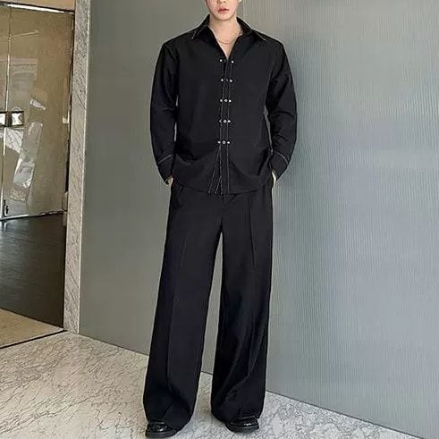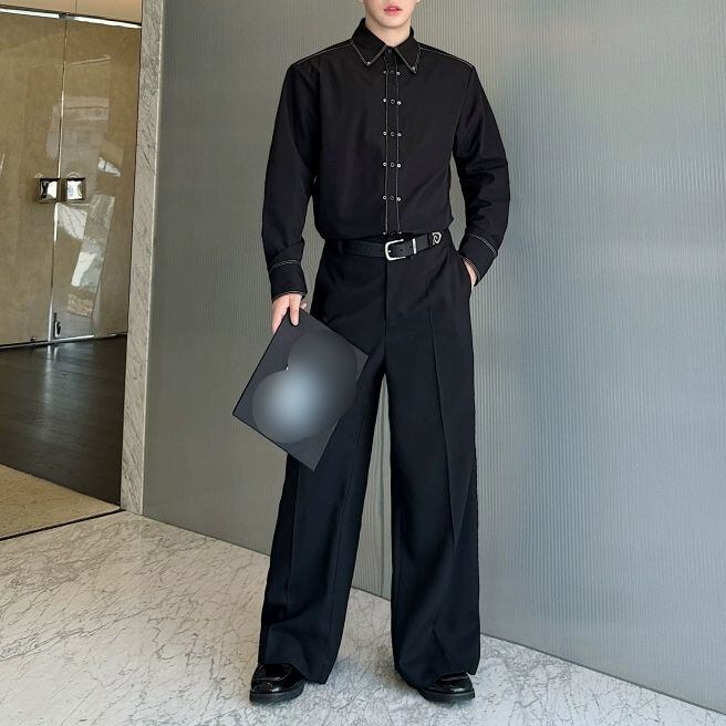 【Men】 DARK STUDDED QUILTED SHIRT LONG-SLEEVE RELAXED FALL STREETWEAR S-1408